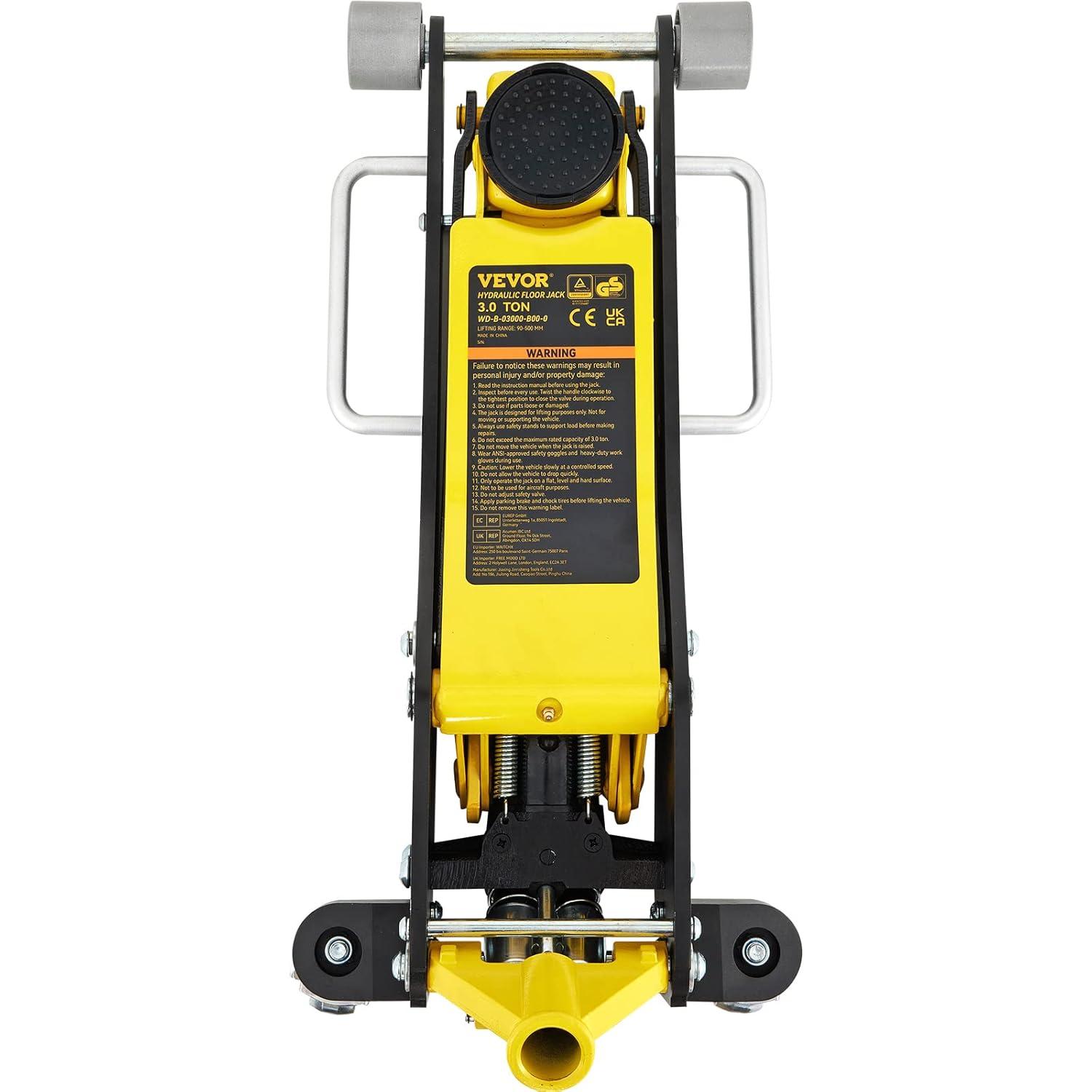 Jack it Up: With 3 tons/6600 lbs strong loading capacity, VEVOR's 3 ton floor jack can help you raise your car for whatever reason. Replace a tire, change oil or maintain the brake, whether you are a professional, car enthusiast, or weekend DIYer to take matters into your own hands!