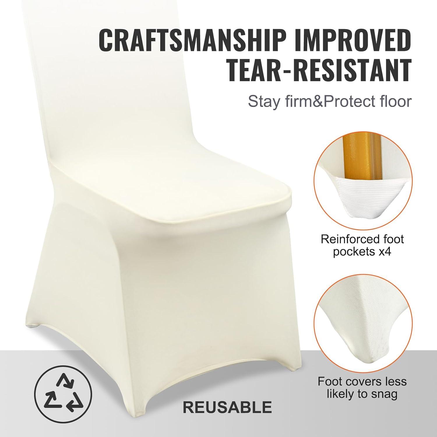 VEVOR 30 PCS White Folding Chair Covers – Ideal for Weddings, Parties, Dining, and Banquets – Universal, Washable Slipcovers for Folding Chairs – Elegant Event Décor(Beige-d)