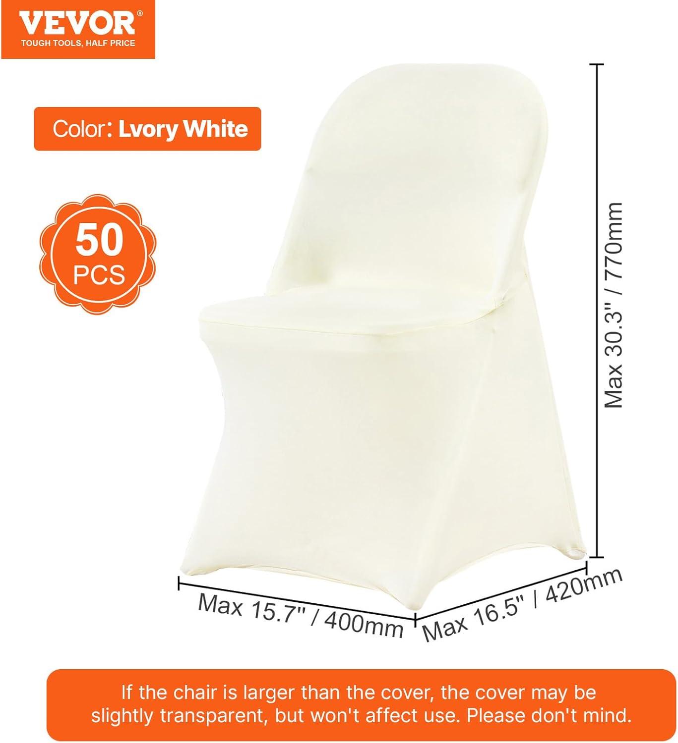 VEVOR 30 PCS White Folding Chair Covers - Ideal for Weddings, Parties, Dining, and Banquets - Universal, Washable Slipcovers for Folding Chairs - Elegant Event Décor(Ivory-c)