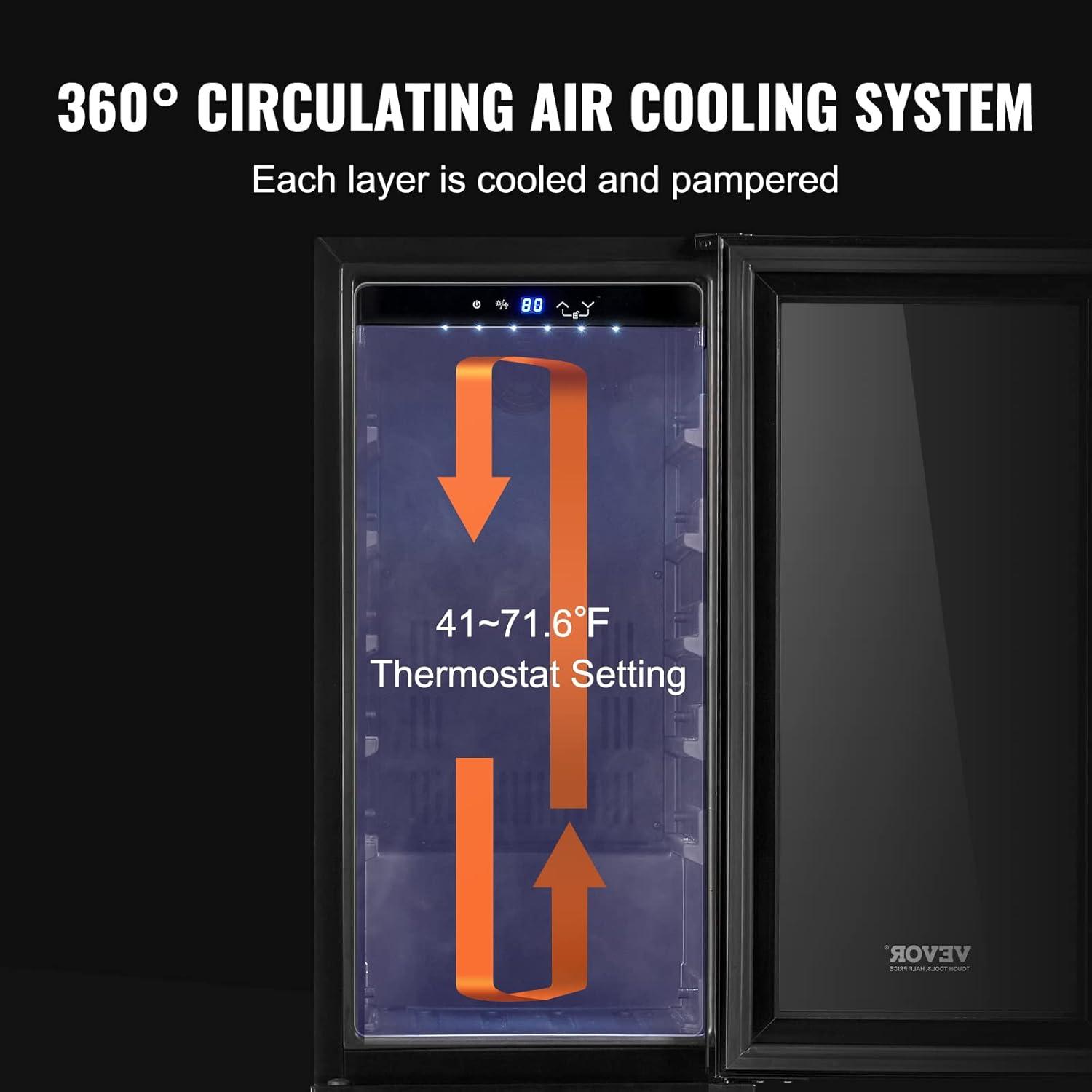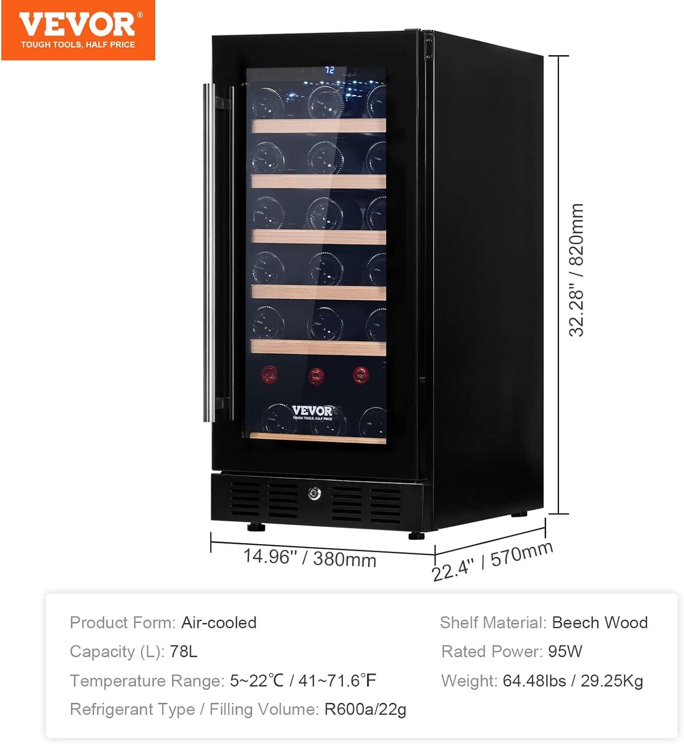 32-Bottle Capacity: The VEVOR freestanding wine cooler holds up to 32 bottles of 750ml wine. Whether you’re a wine enthusiast or collector, this cooler provides ample space to showcase and age your favorite wines.