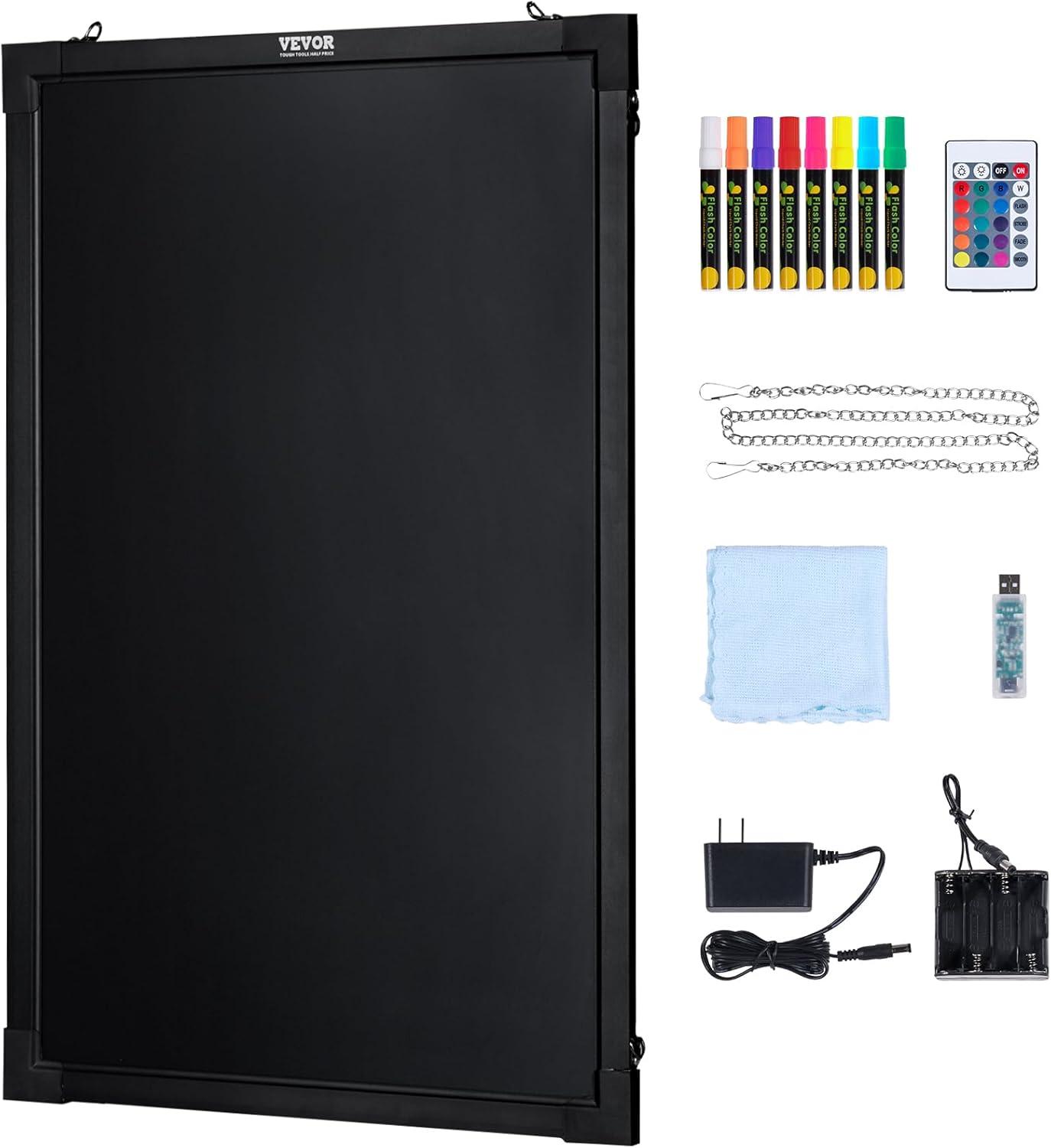 VEVOR 32″x24″ LED Message Writing Board, Menu Sign Boards, Illuminated Erasable Lighted Chalkboard, Neon Effect Drawing Panel with 8 Fluorescent Chalk Markers and Remote Control(24″x16″)