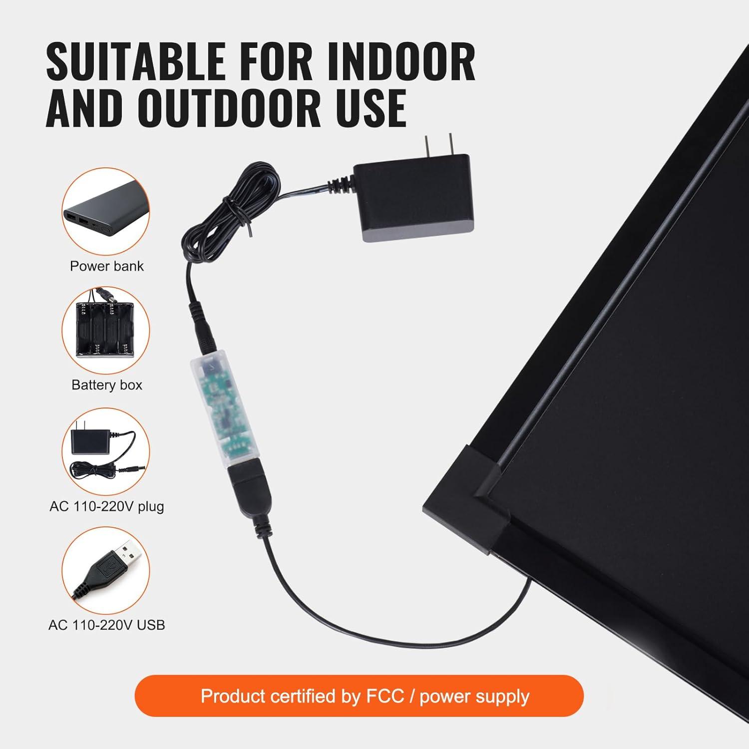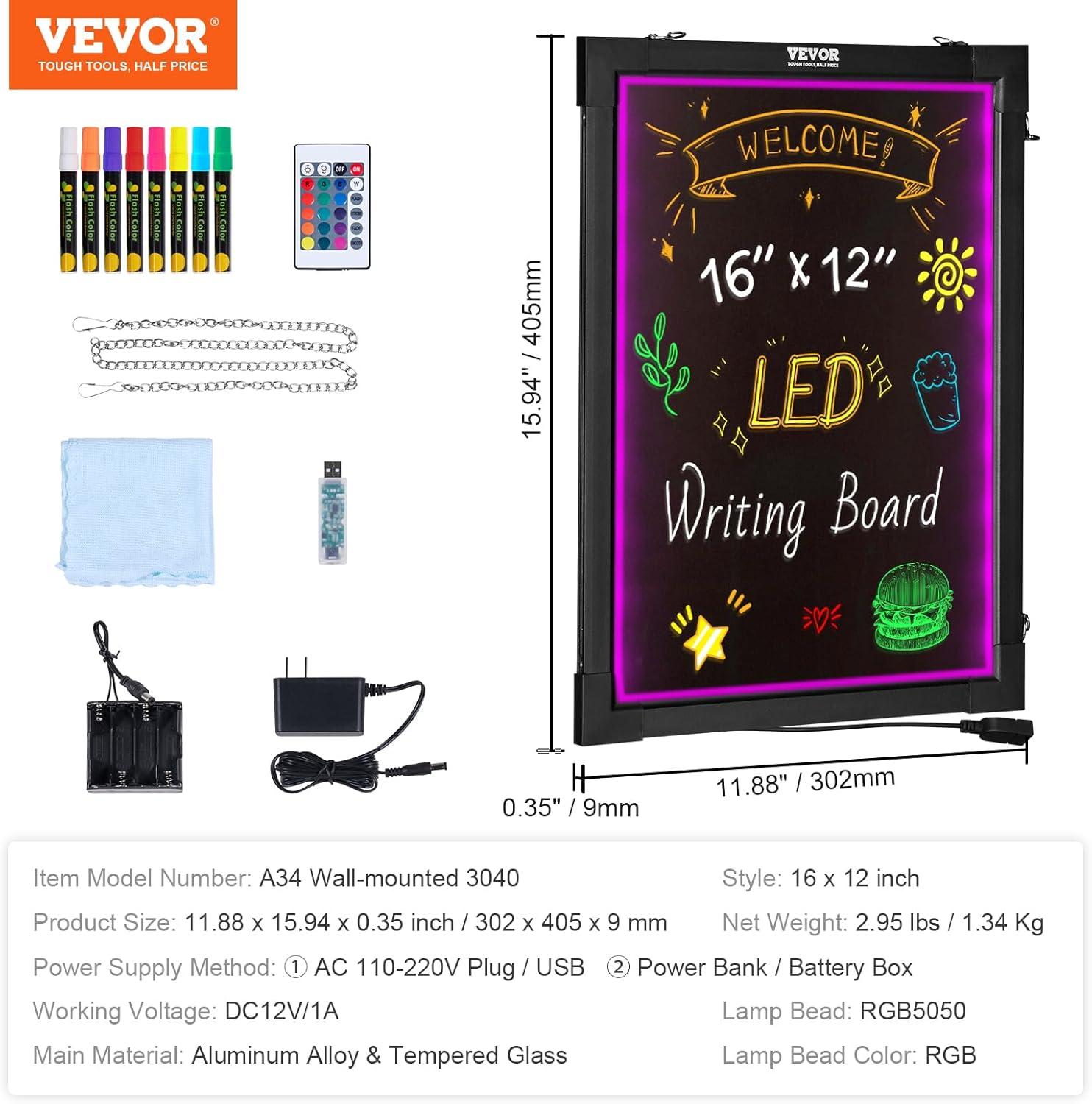 VEVOR 32"x24" LED Message Writing Board, Menu Sign Boards, Illuminated Erasable Lighted Chalkboard, Neon Effect Drawing Panel with 8 Fluorescent Chalk Markers and Remote Control(16"x12")