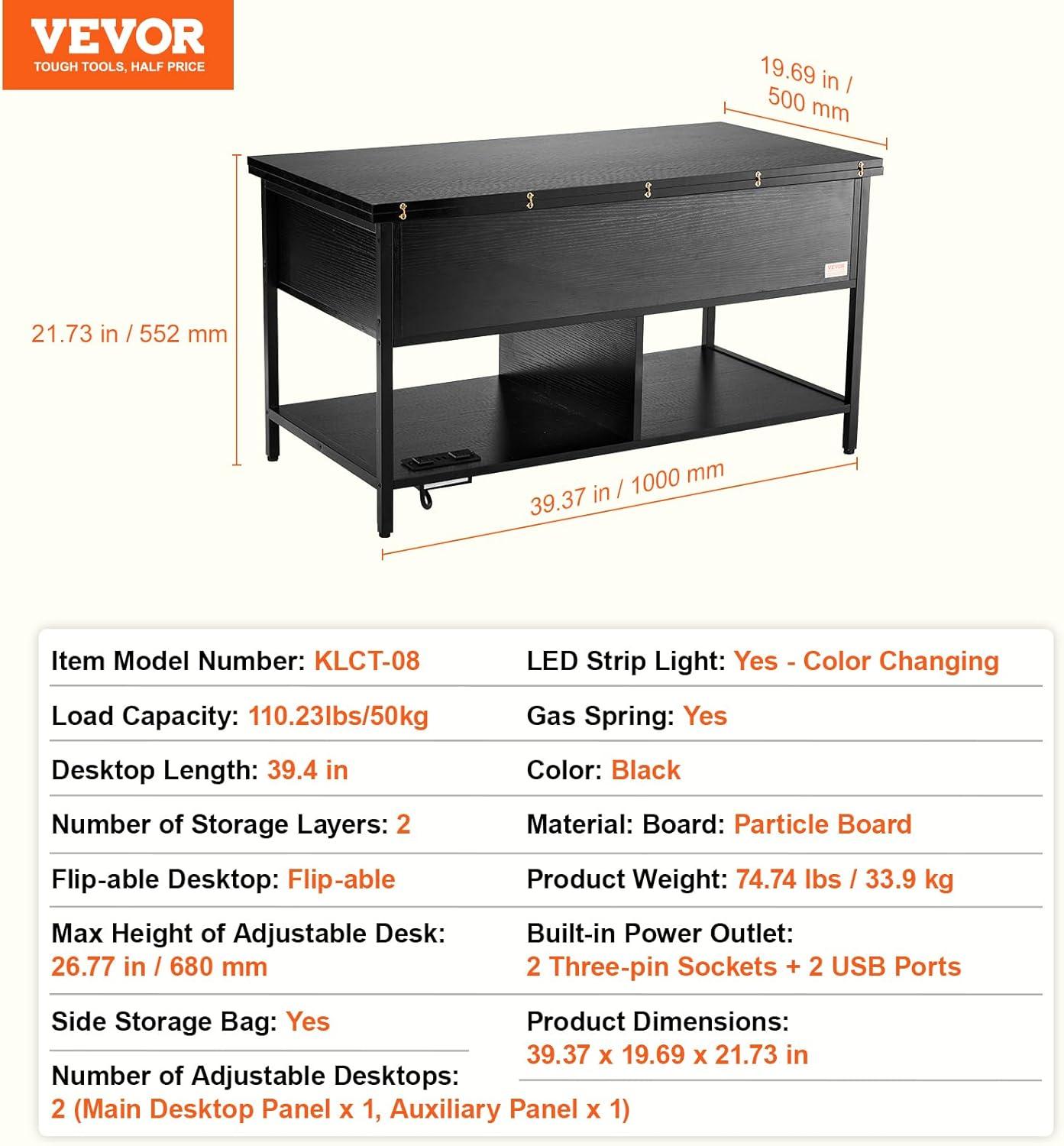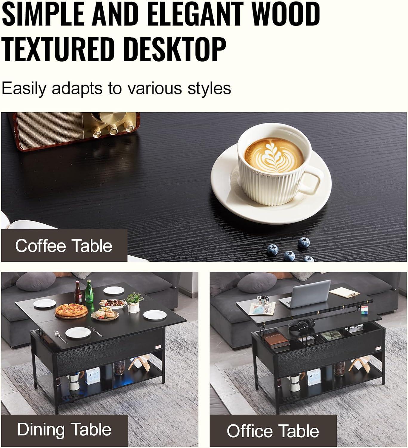 All-in-One Versatility: Instantly switch from lounging to working—space-saving, efficient, and designed for modern multitasking. The lift top coffee table can rise up to 21.5 in / 545 mm, reaching the ideal height for working without strain
