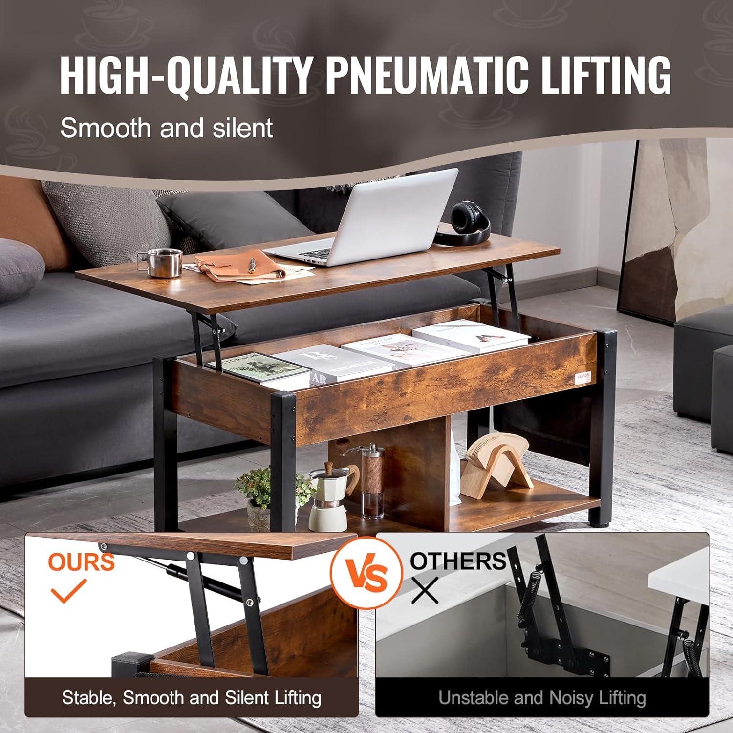 All-in-One Versatility: Instantly switch from lounging to working—space-saving, efficient, and designed for modern multitasking. The lift top coffee table can rise up to 21.5 in / 545 mm, reaching the ideal height for working without strain