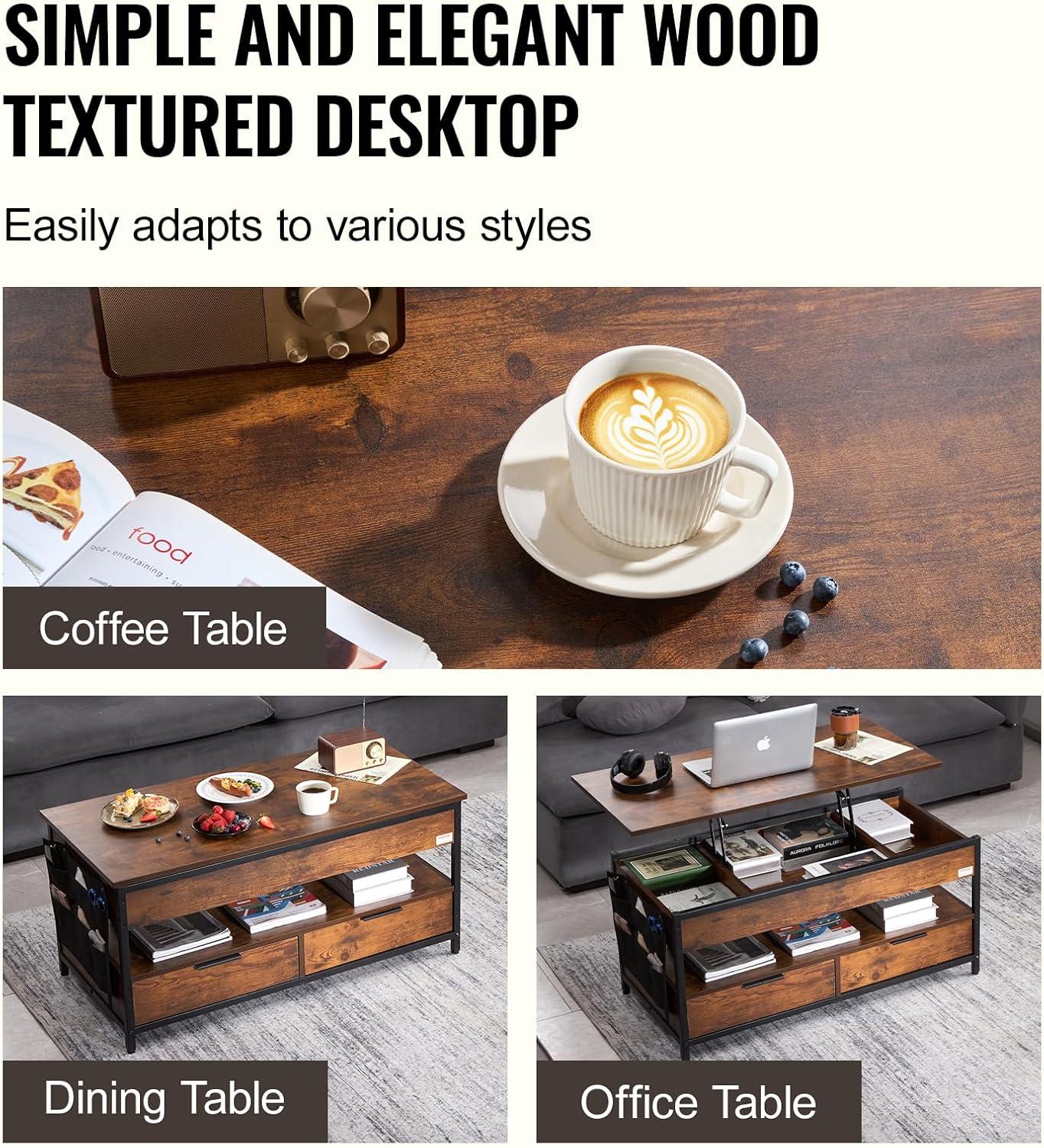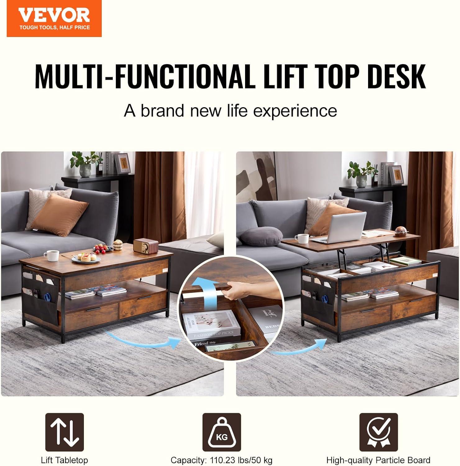 All-in-One Versatility: Instantly switch from lounging to working—space-saving, efficient, and designed for modern multitasking. The lift top coffee table can rise up to 21.5 in / 545 mm, reaching the ideal height for working without strain
