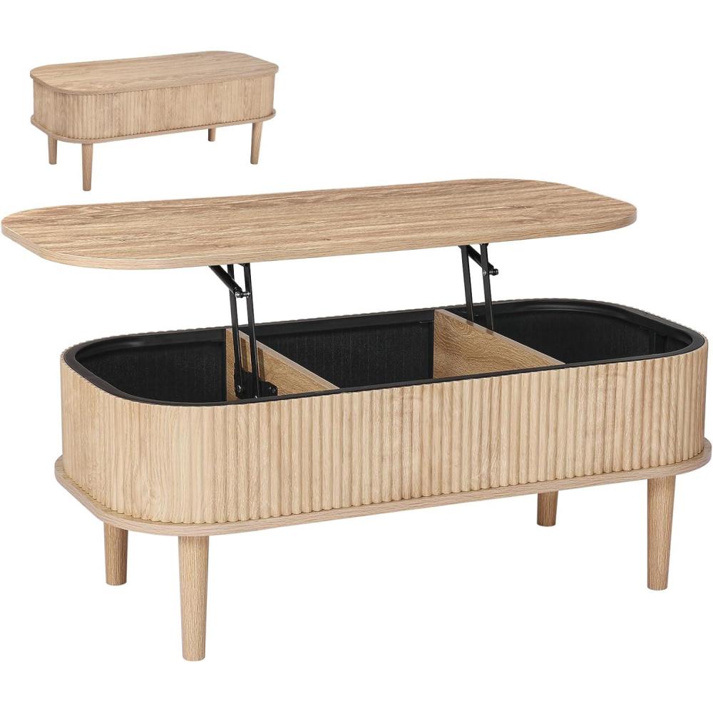 imageVEVOR 394 in Lift Top Coffee Table Fluted Oval Coffee Table with 3 Hidden Compartment Mid Century Wooden Oval Center Desk with Storage Lift Up Tabletop for Home ampamp Office Easy Assembly BurlywoodAnatural