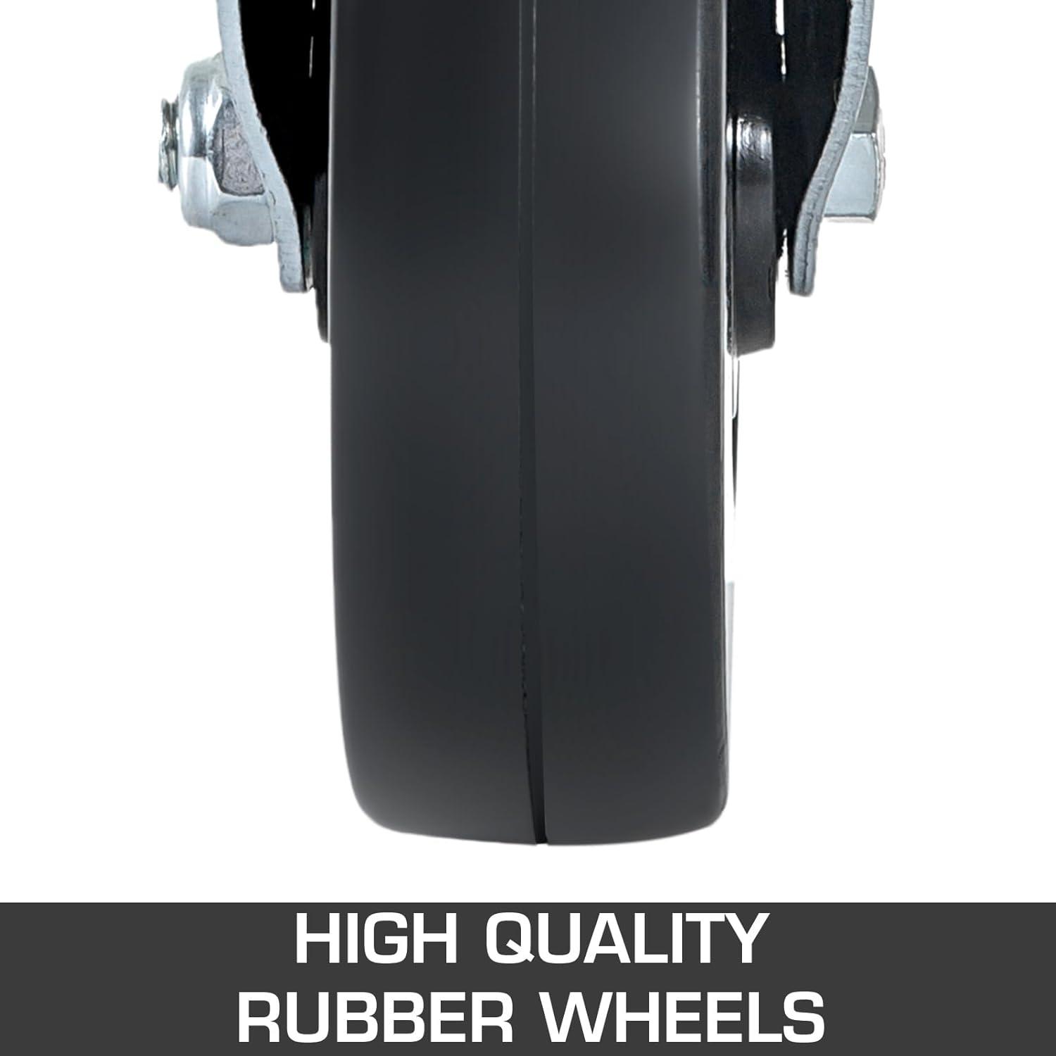 The highest quality industrial grade Scaffolding caster wheels made ofon-markingubber type, can roll smoothly and silently on any floors.360 rotationesign make it more flexibly to transform direction.teel structures body is extremely hard wearing and resistant to dirt. 330lbs capacity for each caster. It can provide instant mobility for stationary objects in your workshop, garage, warehouse, offices and much more.