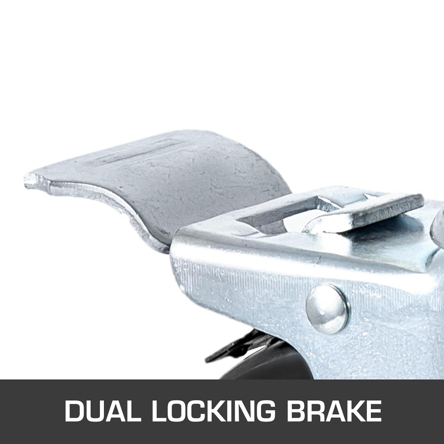 The dual lock caster is the perfect solution for easily positioning the wheel to any desired area. Double lock system that locks both the swivel plate and the wheelimultaneously.