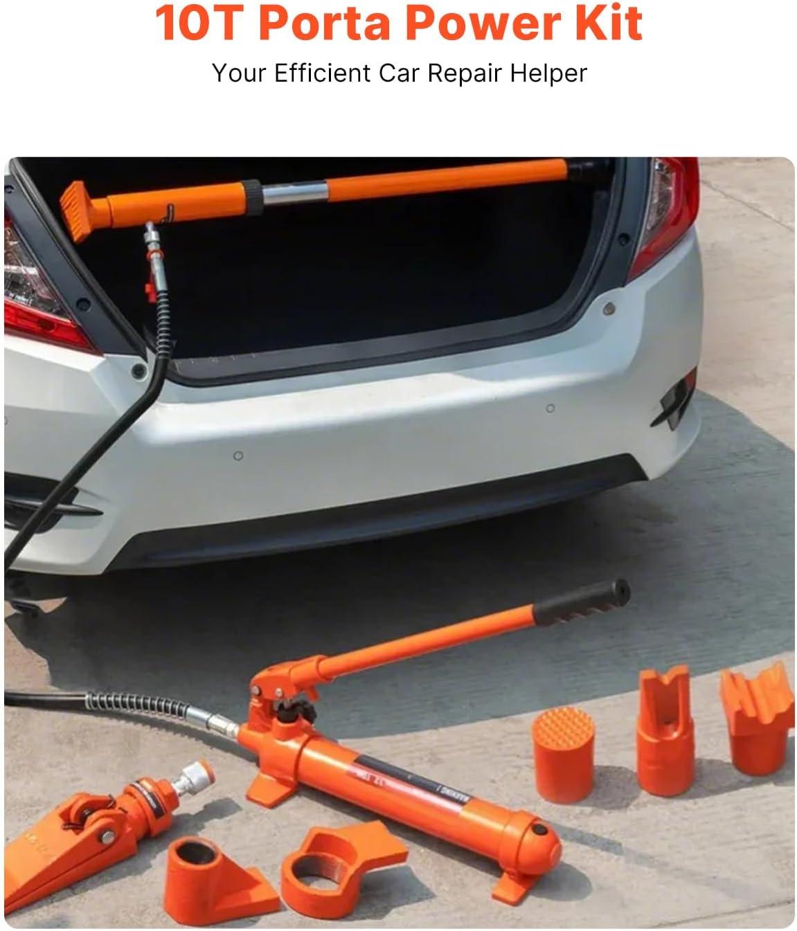 VEVOR 4 Ton Porta Power Kit, Portable Hydraulic Jack with 3.9 ft/1.2 m Oil Hose, Auto Body Frame Repair Kit with Storage Case for Car Repair, Truck, Farm (8800 LBS)(10 Ton)