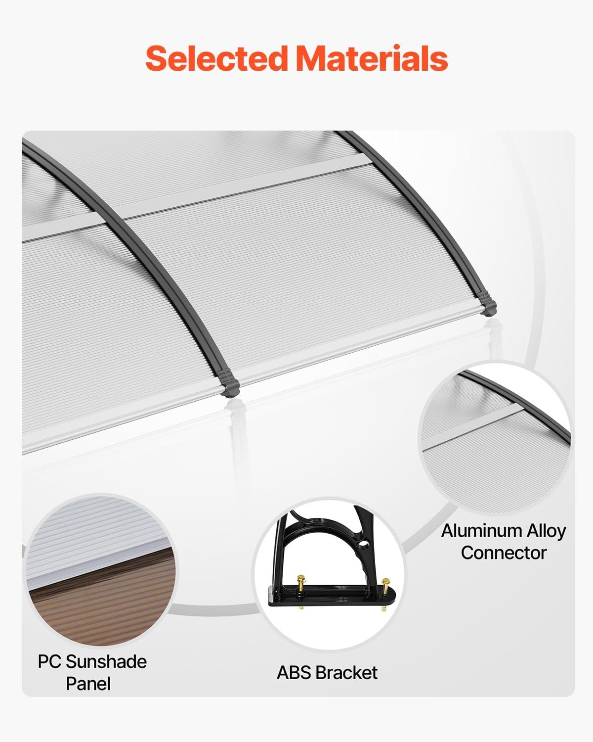 High-Quality Assurance: Our canopy is made of transparent PC panels, ABS brackets, and aluminum alloy installation bars. The PC panels offer excellent transparency, temperature resistance, and durability. The high-strength ABS brackets remain intact without deformation. The aluminum alloy installation bars ensure a secure and watertight installation, providing long-lasting quality protection for your windows and doors.