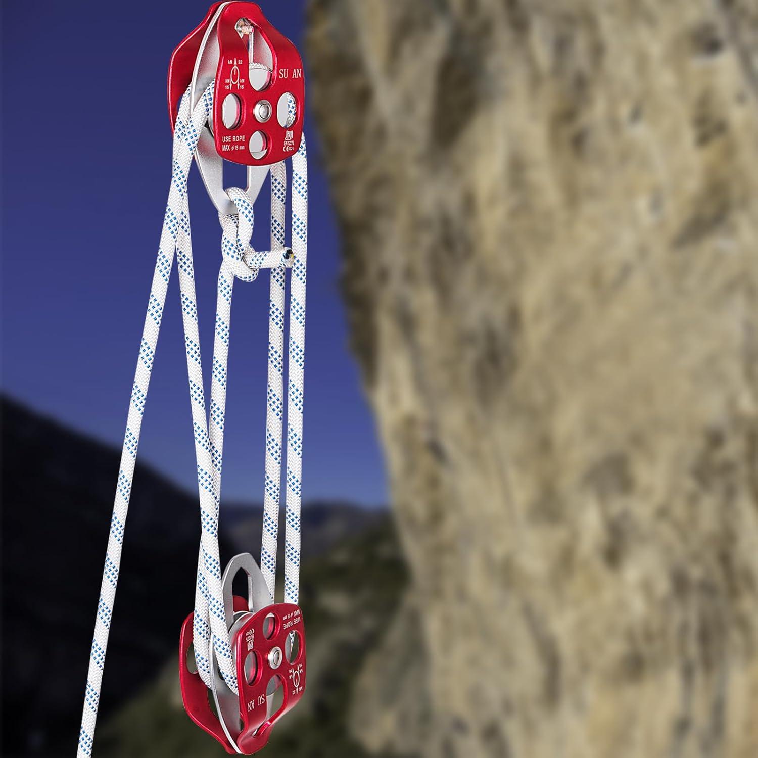 Long Rope Reach: Equipped with 100 feet of durable rope, this rope hoist pulley system comes with 6mm high-quality polyester rope that is wear-resistant and tear-resistant. It's ideal for lifting in a variety of settings, such as garages, campsites, boats, construction sites, hunting, tree cutting, or attics. The rope’s strength ensures efficient lifting at different heights, making heavy lifting a whole lot easier.