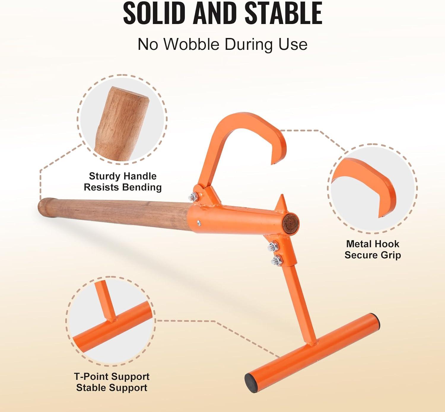 imageVEVOR 48quot Timberjack Log Lifter Adjustable Heavy Duty Log Roller Cant Hook Log Jack with Rubber Grip ampamp Triangular Support Log Cant Hook Logging Tools for Rolling and Lifting Logs up to 25quot DiaWood Handle 465