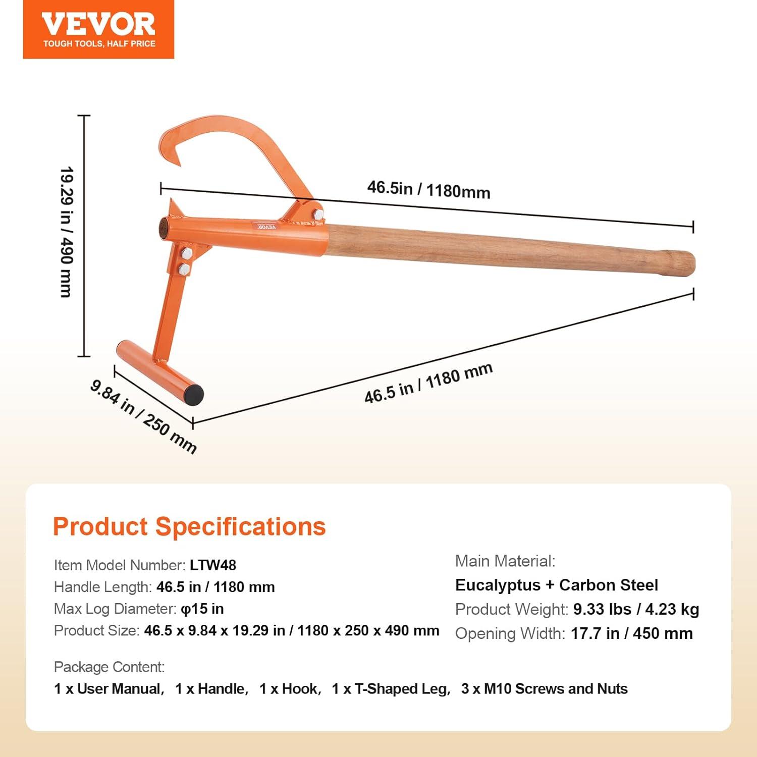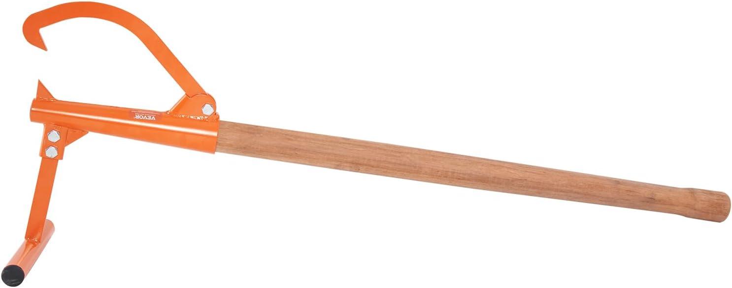 VEVOR 48″ Timberjack Log Lifter, Adjustable Heavy Duty Log Roller Cant Hook, Log Jack with Rubber Grip & Triangular Support, Log Cant Hook Logging Tools for Rolling and Lifting Logs up to 25″ Dia(Wood Handle 46.5″)
