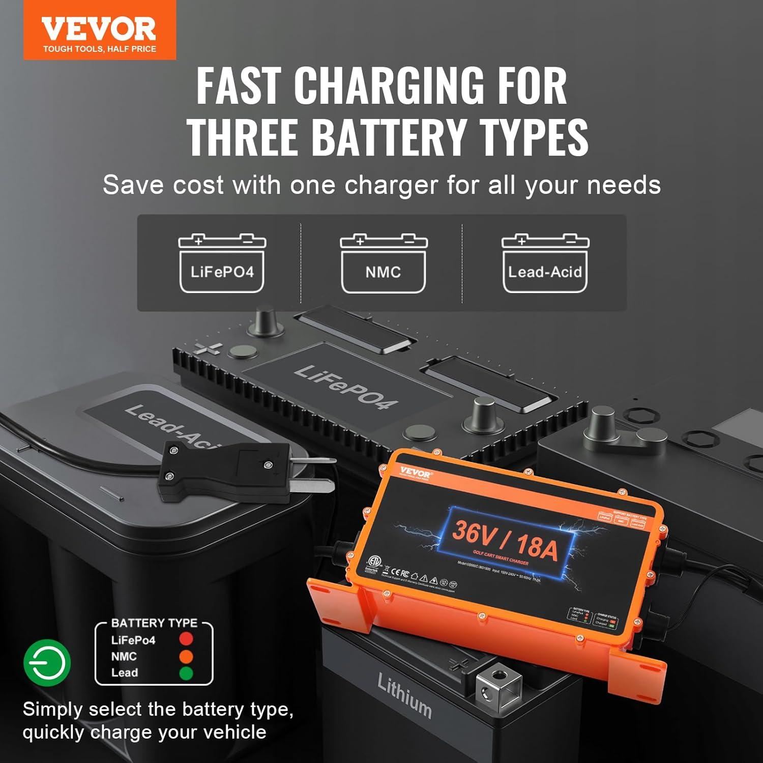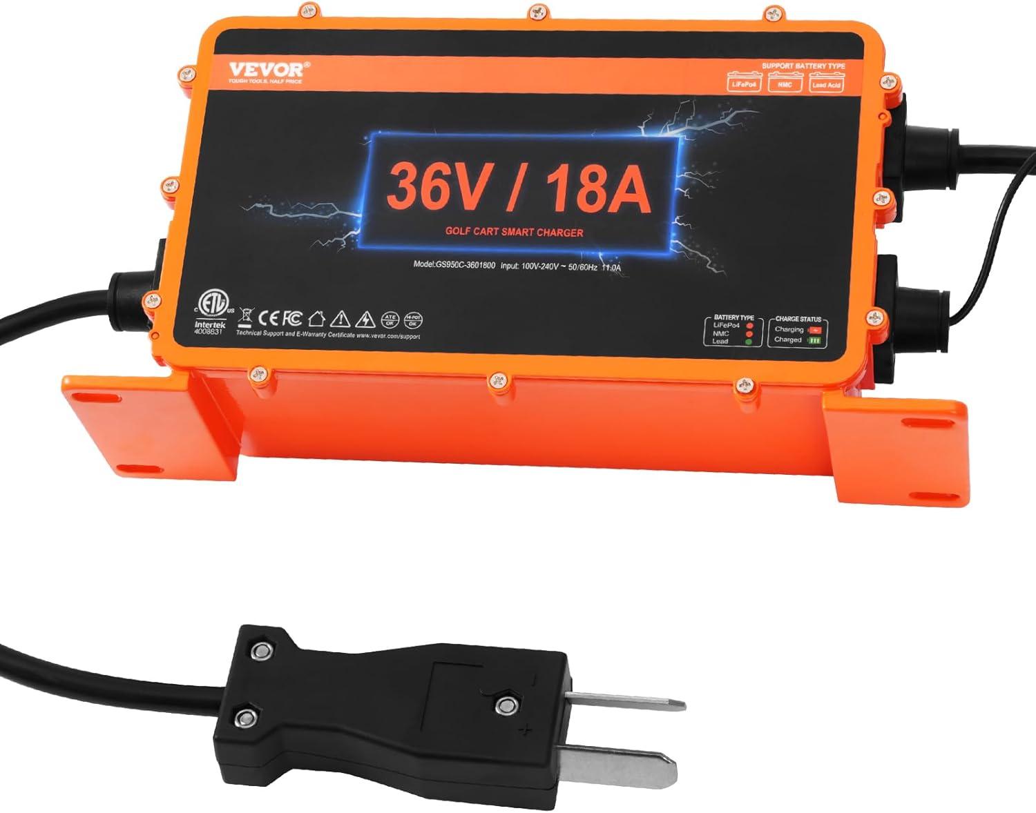 VEVOR 48 Volt Golf Cart Battery Charger, 15 AMP, Smart Battery Charger with RXV Plug, Compatible with Lead-Acid AGM/GEL/EFB MF Flooded NMC LiFePO4 Batteries for EZGO TXT, IP67 Waterproof ETL Certified(36V 18A For Crowfoot Plug)