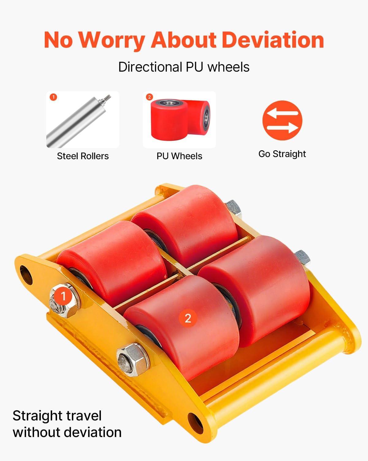 imageVEVOR 4PCS Machinery Skates Dollies 17637 lb Heavy Duty Equipment Moving Skates with 4 PU Wheels 360 Rotation NonSlip Cap LowProfile Industrial Mover Rollers for Factory Warehouse Workshop1 Pack New