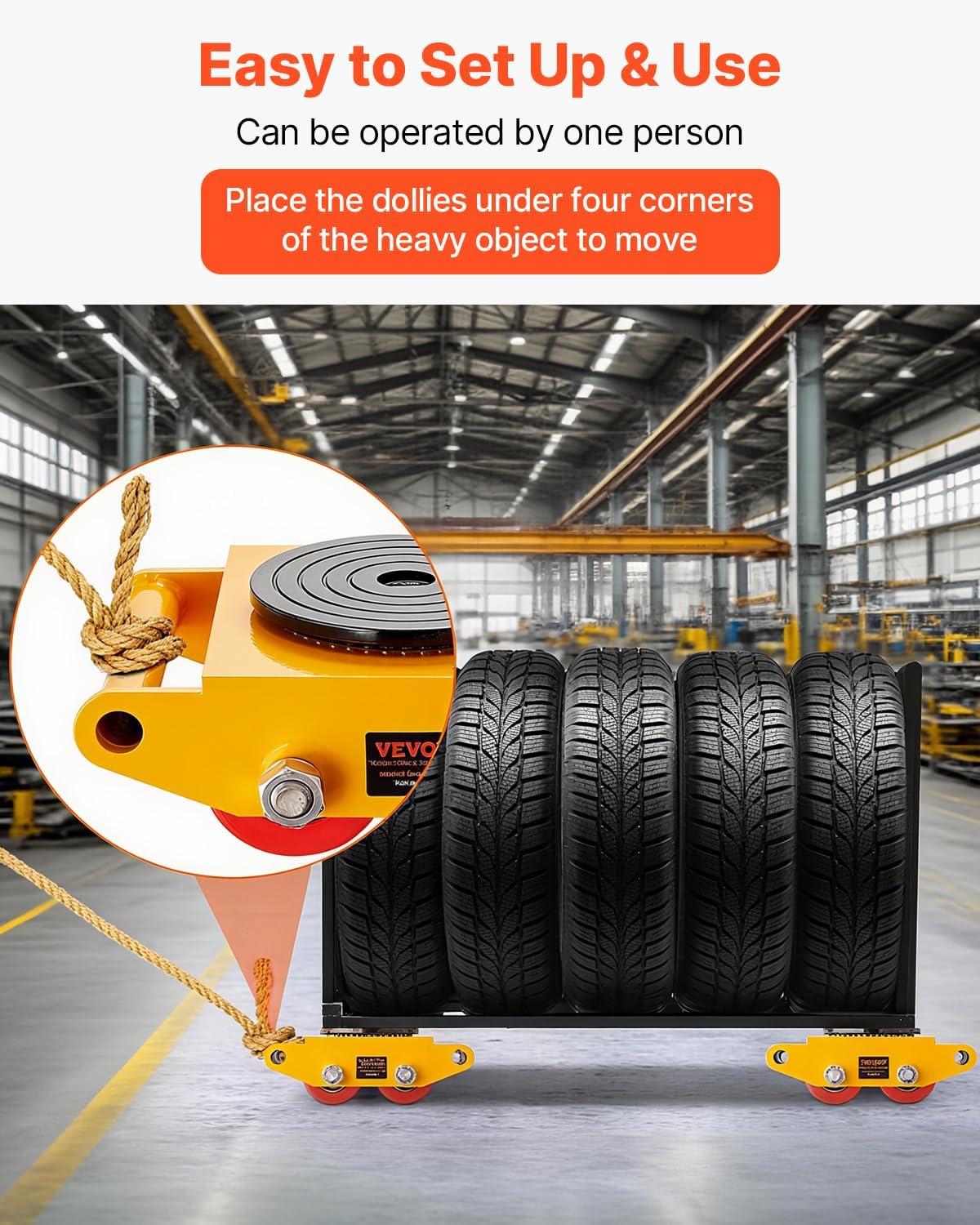 Massive 8-Ton Total Capacity: This 4-pack of heavy-duty machinery skate dollies effortlessly handles loads up to 17,637 lbs. Perfect for moving industrial machinery, large equipment, and oversized items. Built with reinforced bolts for maximum structural strength, ensuring safe and stable transport while reducing manual labor and handling costs.