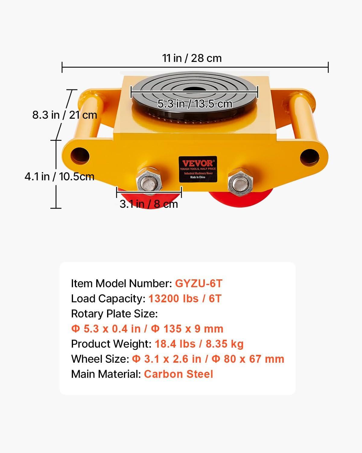Durable Power-Coated Steel Build: Crafted from thickened carbon steel with a anti-corrosion power-coated finish, each machinery mover resists rust and deformation. The 360° swivel non-slip cap offers flexible directional control, making it easy to maneuver heavy loads in confined spaces.