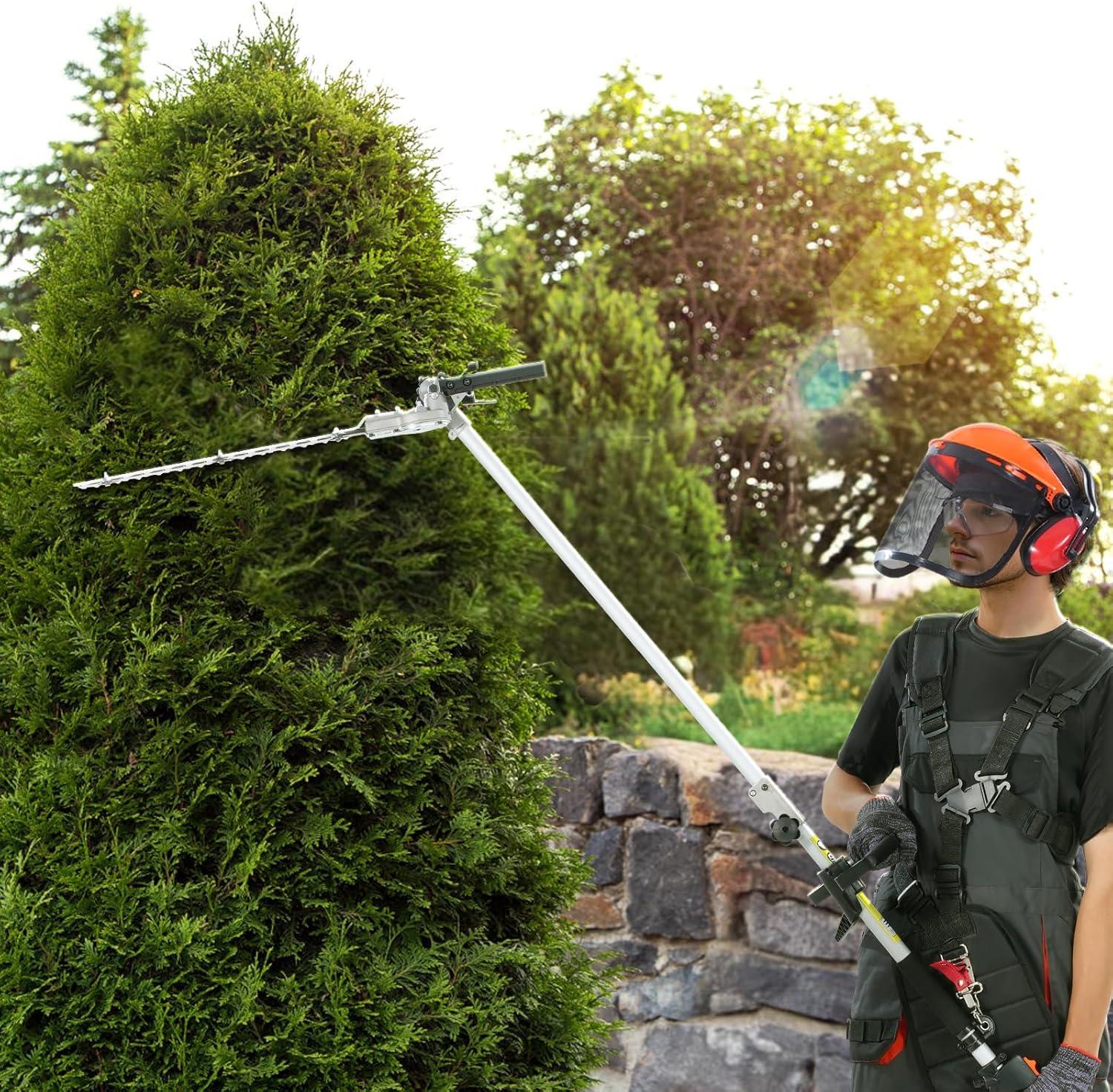 Comfortable to Use: Equipped with a single shoulder strap to assist handheld operation, our pole hedge trimmer reduces hand fatigue. The lightweight design makes it easy to use. It also comes with protective gloves and ear protectors to ensure hand safety and reduce noise damage, maximizing comfort and minimizing work fatigue.