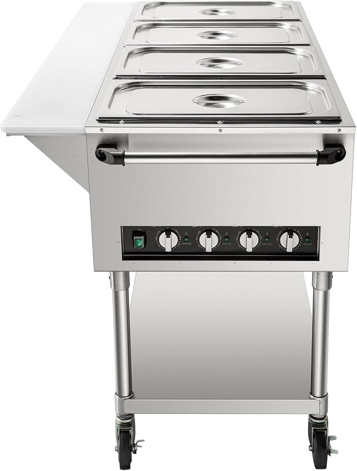 Independent Heating System: One knob switch controls one food pan. You can set the temperature independently for each pan to ensure optimal freshness and flavor. Our food warming table operates without the need for water, using air heat transfer for safe and convenient heating. Preheat for 10-20 minutes before heating delicious food. (This steam table is intended only for dry use).