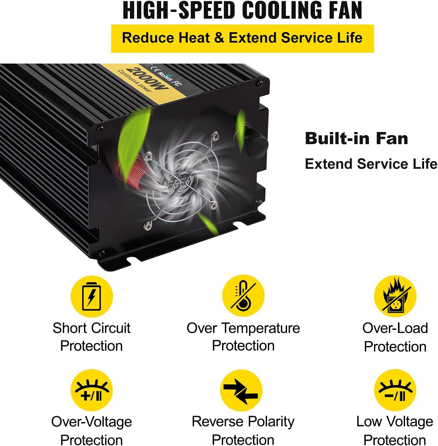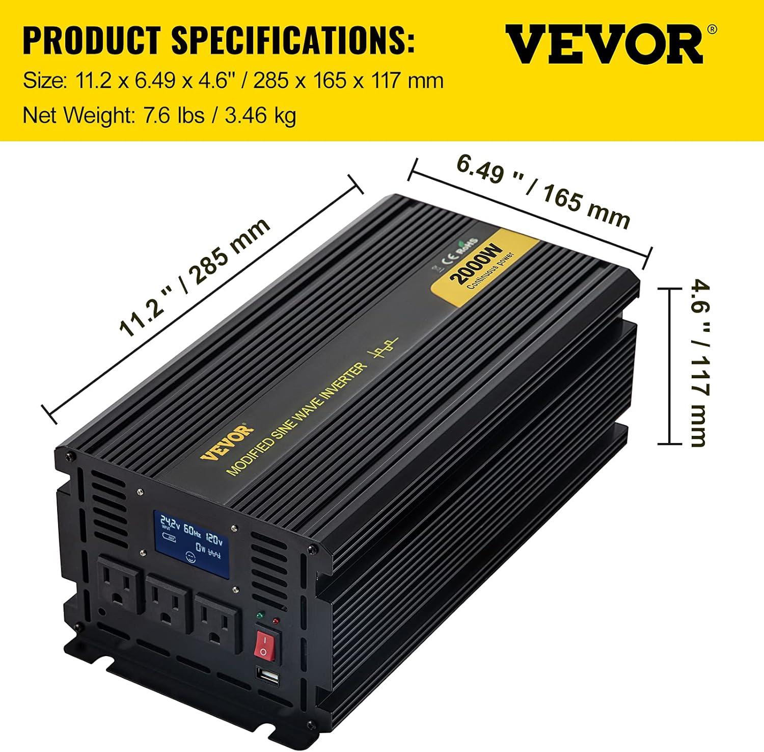 VEVOR 5000W Modified Sine Wave Power Inverter, DC 12V to AC 120V Car Converter with LCD Remote Control, USB Port, AC Outlets Inverter for Truck RV(2000W)