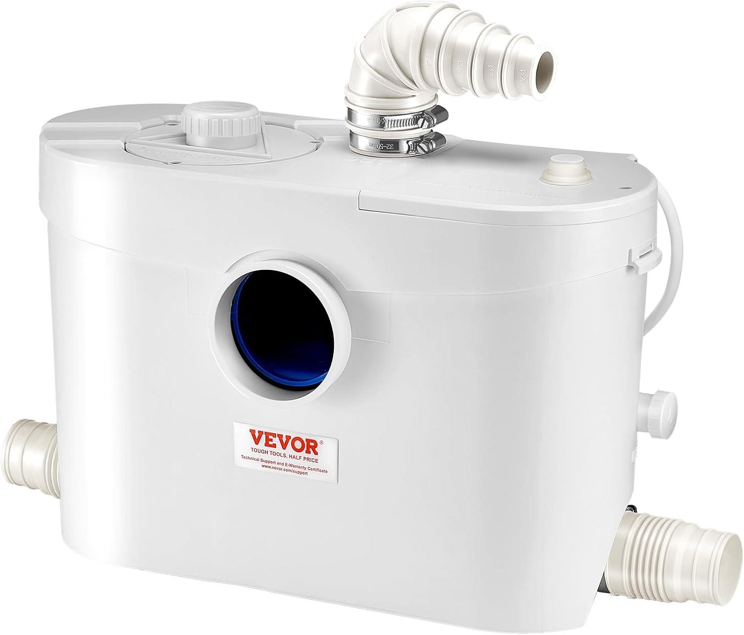 VEVOR 500W Macerator Pump, 29 GPM Flow, 26 ft/8 m Head, Macerator Sewerage Toilet Pump with 4 Water Inlets, Waste Water Disposal Upflush Machine for Toilet, Basement, Shower, Sink, Laundry, Bathtub(900W)