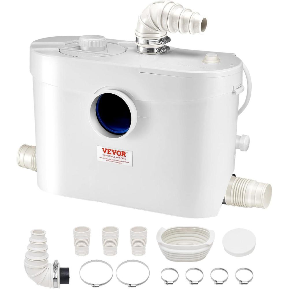 Be the first to review “VEVOR 500W Macerator Pump, 29 GPM Flow, 26 ft/8 m Head, Macerator Sewerage Toilet Pump with 4 Water Inlets, Waste Water Disposal Upflush Machine for Toilet, Basement, Shower, Sink, Laundry, Bathtub(900W)”