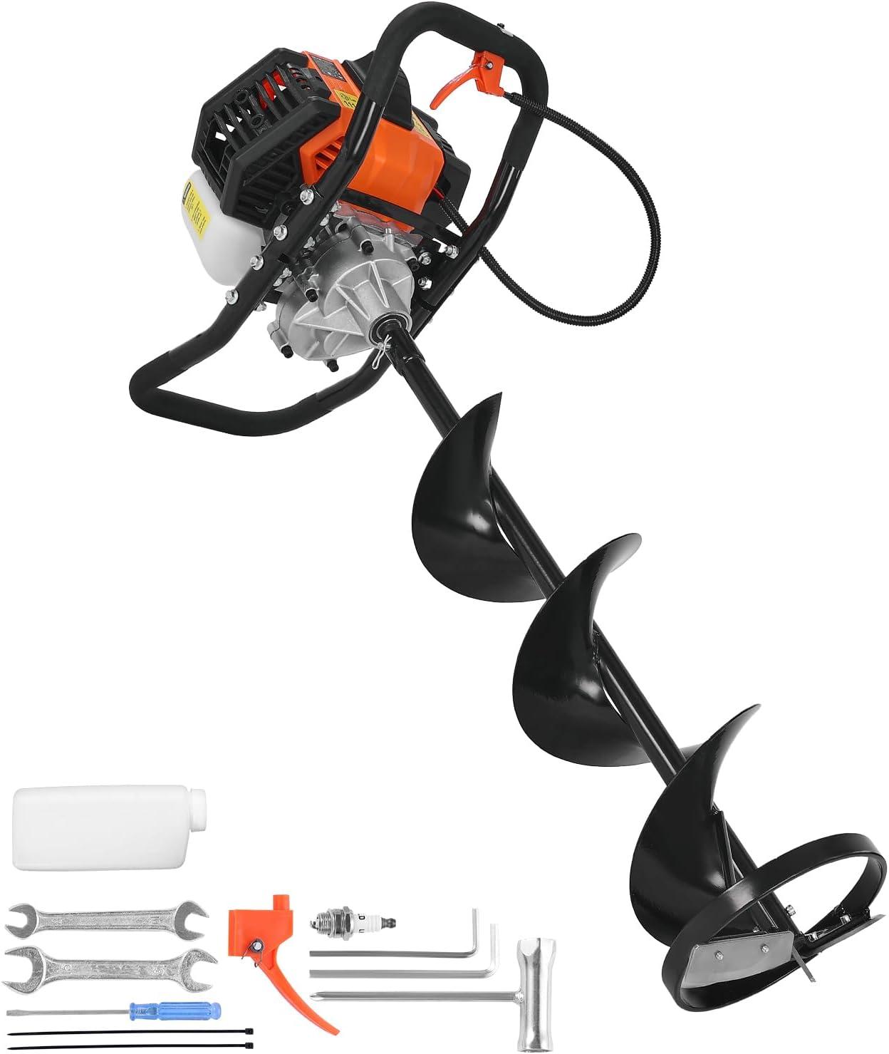 EASY TO USE: This gas-powered ice drill comes with a user manual, making it easy to operate even for first-time users. Simply assemble the drill rod and handle, add the pre-mixed fuel, and you're ready to start. The built-in safety switch ensures secure operation, and the ergonomic dual-side handles provide stability and reduce hand fatigue
