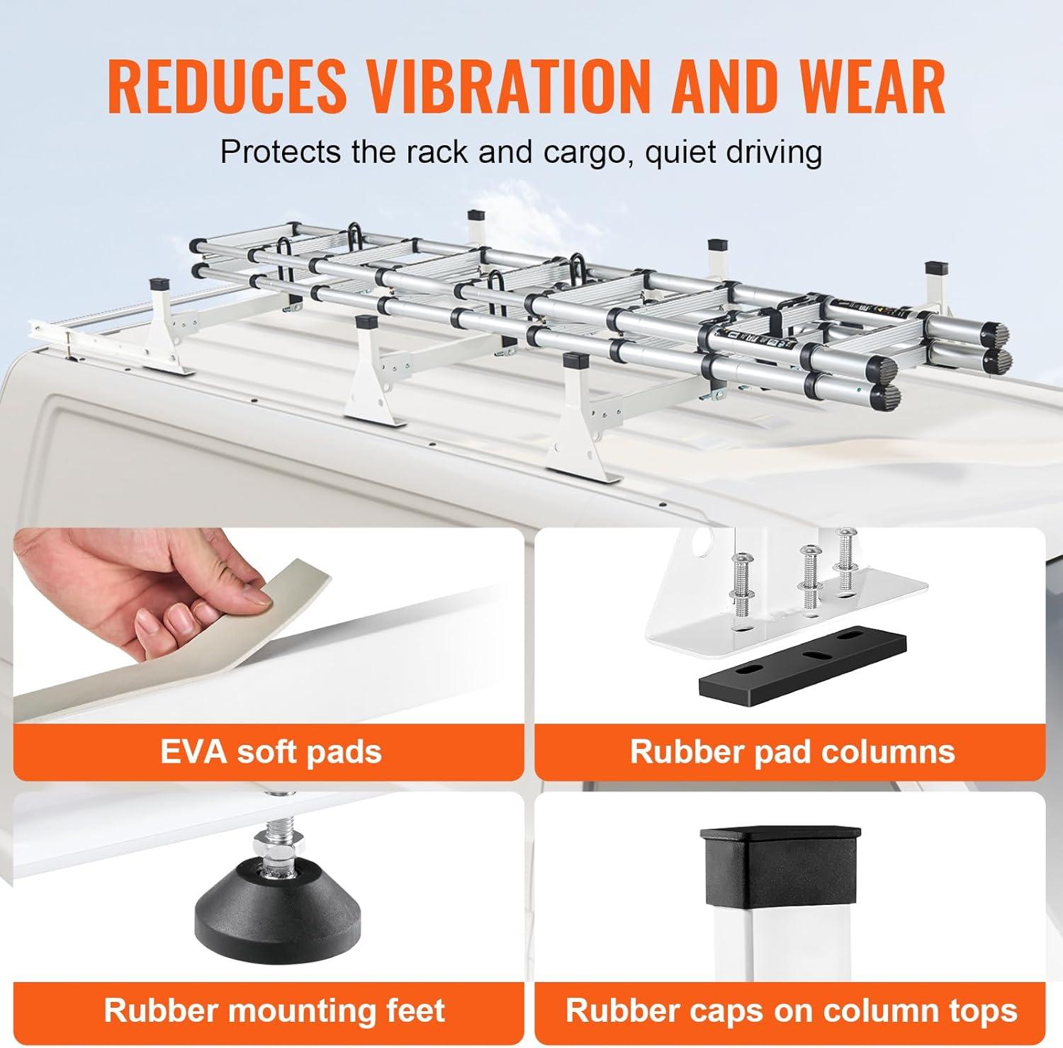 imageVEVOR Van Ladder Racks 472787 in Adjustable 500 lbs Capacity Alloy Steel Compatible with FullSize Vans 2 Pcs Whitefor MidLarge Size Vans