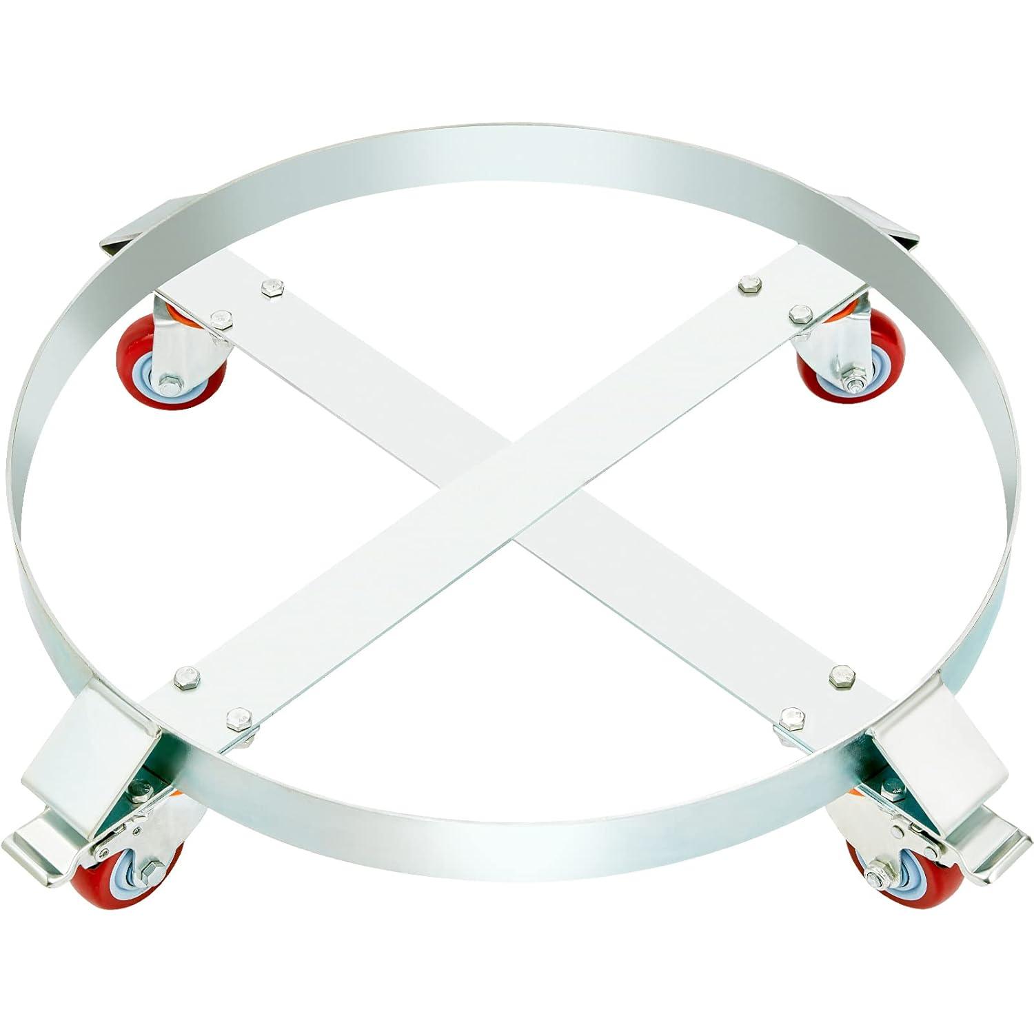 Heavy-duty Steel Construction: 55 gallon drum dolly is constructed of high-quality carbon steel with a 0.14 in / 3.5 mm thickened frame for rugged durability. The galvanized finish for corrosion resistance and cross strap design avoids warping or tipping.