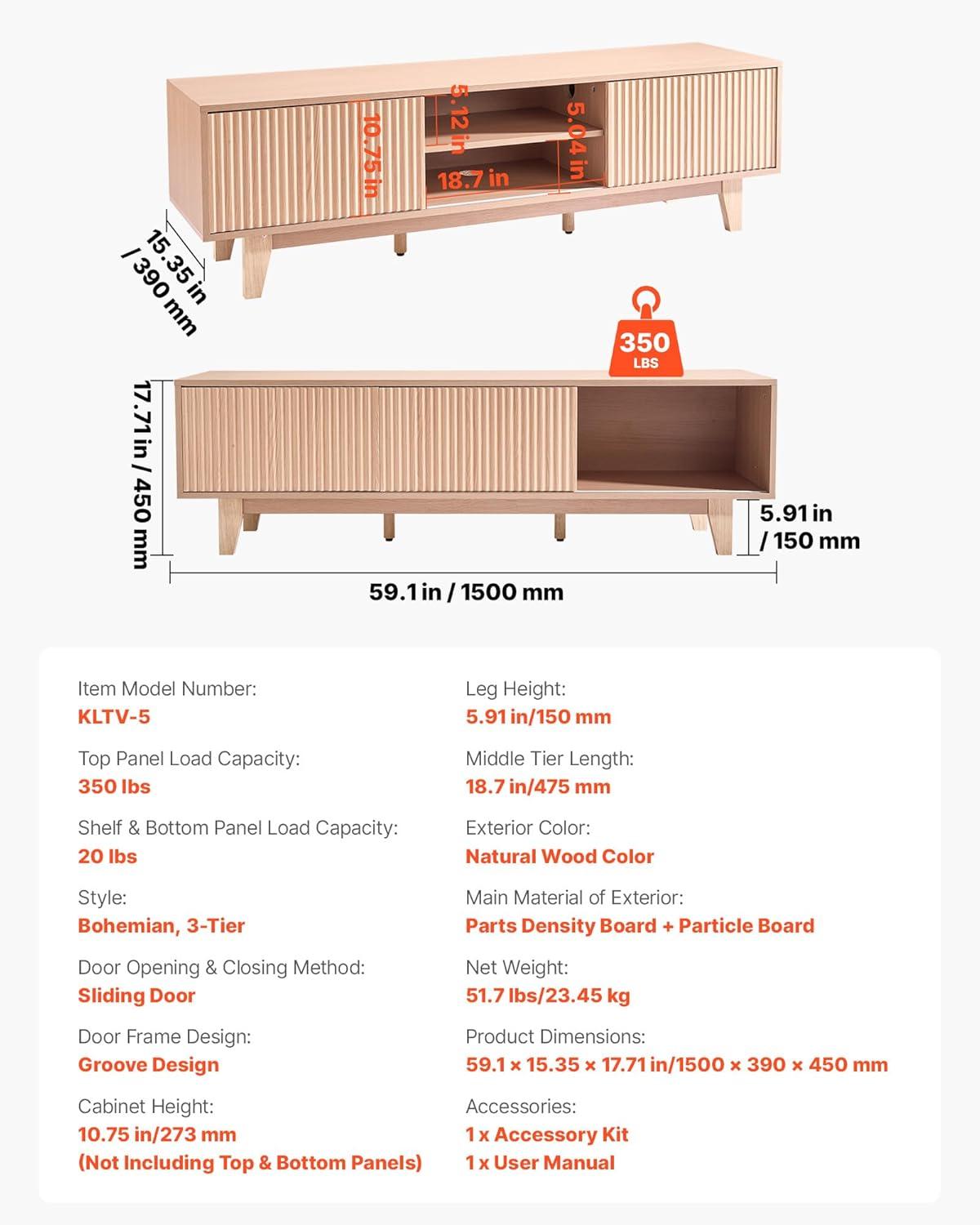 Thoughtful Details: This boho entertainment center is reliable to use. It includes adjustable legs to handle uneven surfaces, and 5.91 in high legs make cleaning easy. Its sliding door makes access easy, while an anti-tip device avoids accidental tipping
