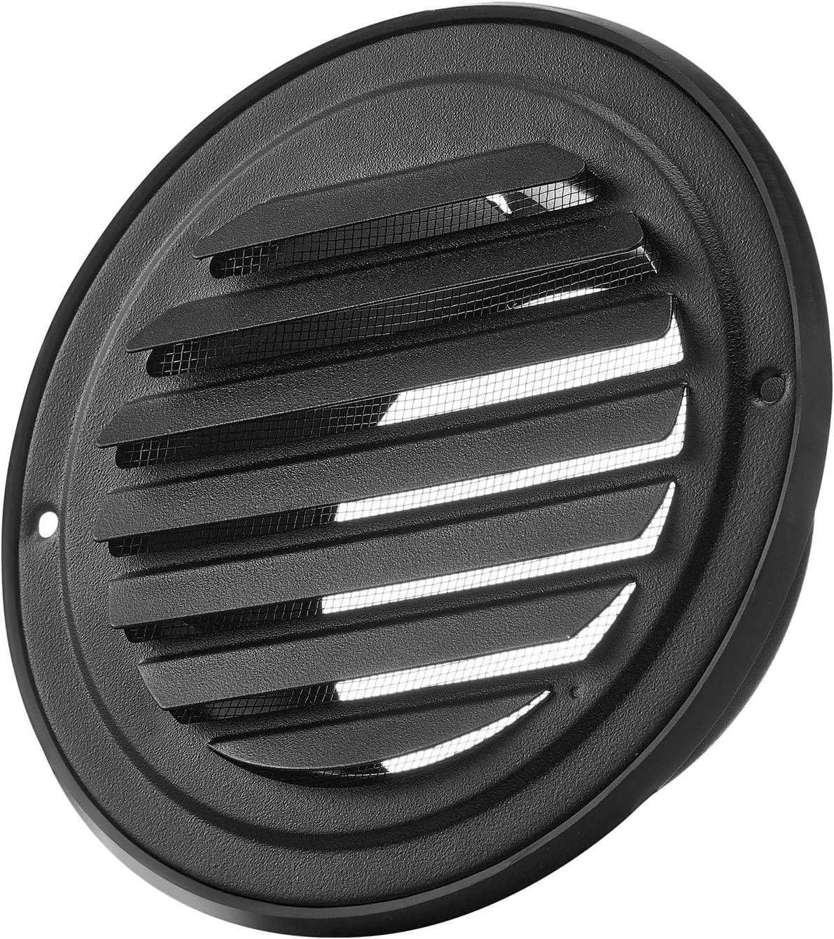 VEVOR 6 inch Wall Vent Cover, Louvered Round AC Vent Gable Cover, Premium Stainless Steel & with Built-in a Protection Screen, for House,Bathroom,Garage,Kitchen,Basement (2 Pack, Black)(4 Inch)