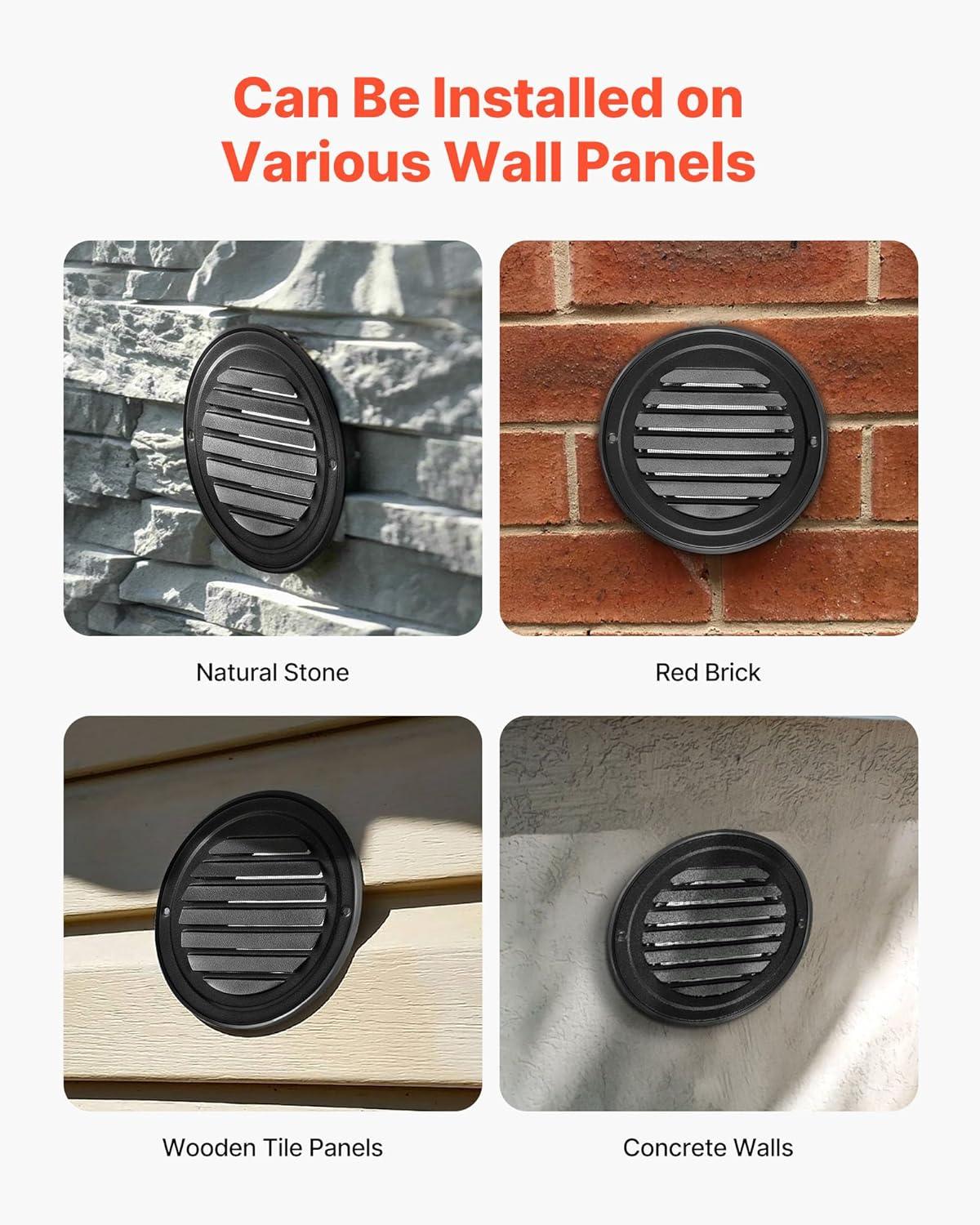 Easy Wall Installation: Suitable for installation on most wall types, including natural stone, brick, wood, or concrete walls. The vent has pre-drilled holes, allowing you to simply mark the position on the wall, drill, and secure with screws