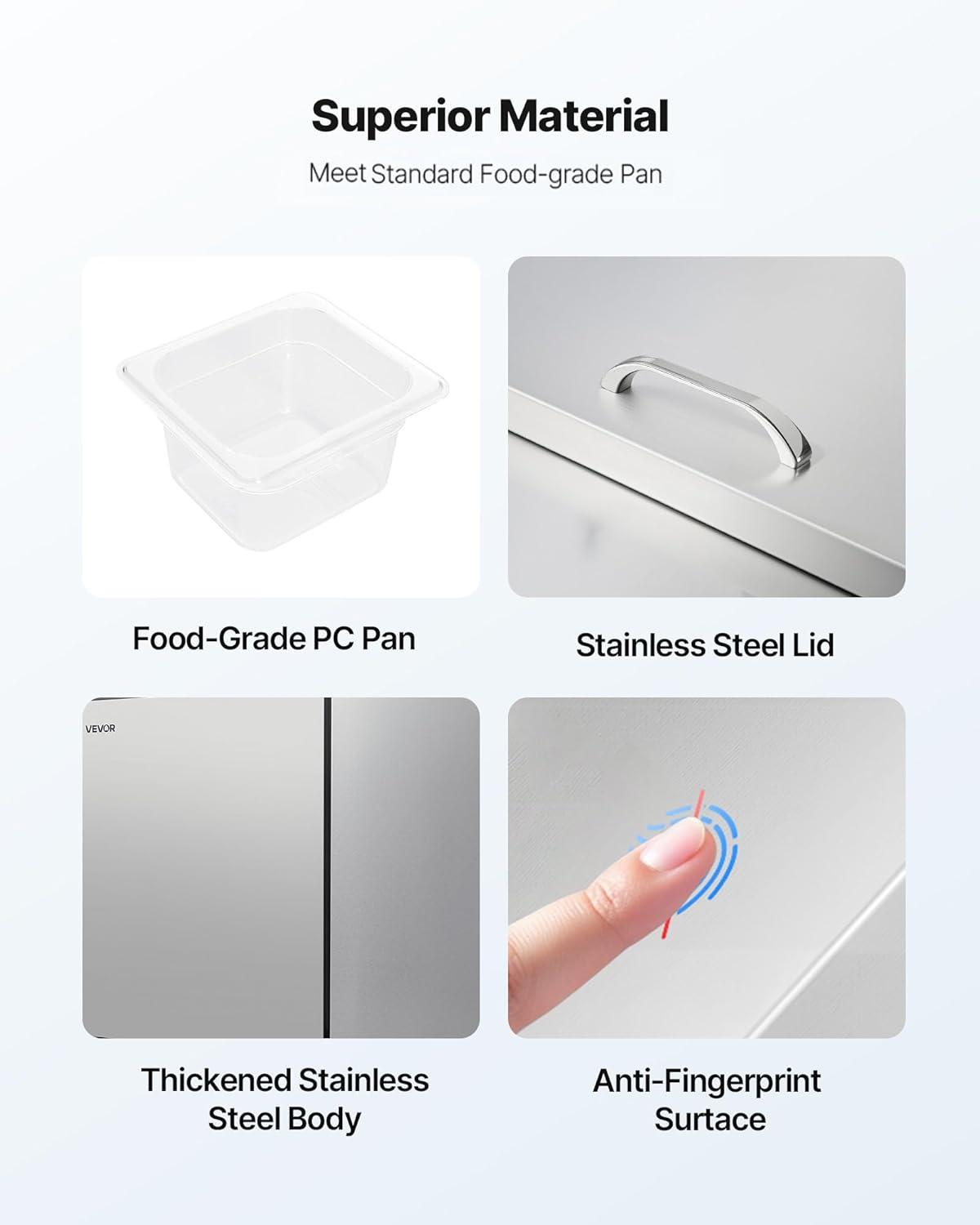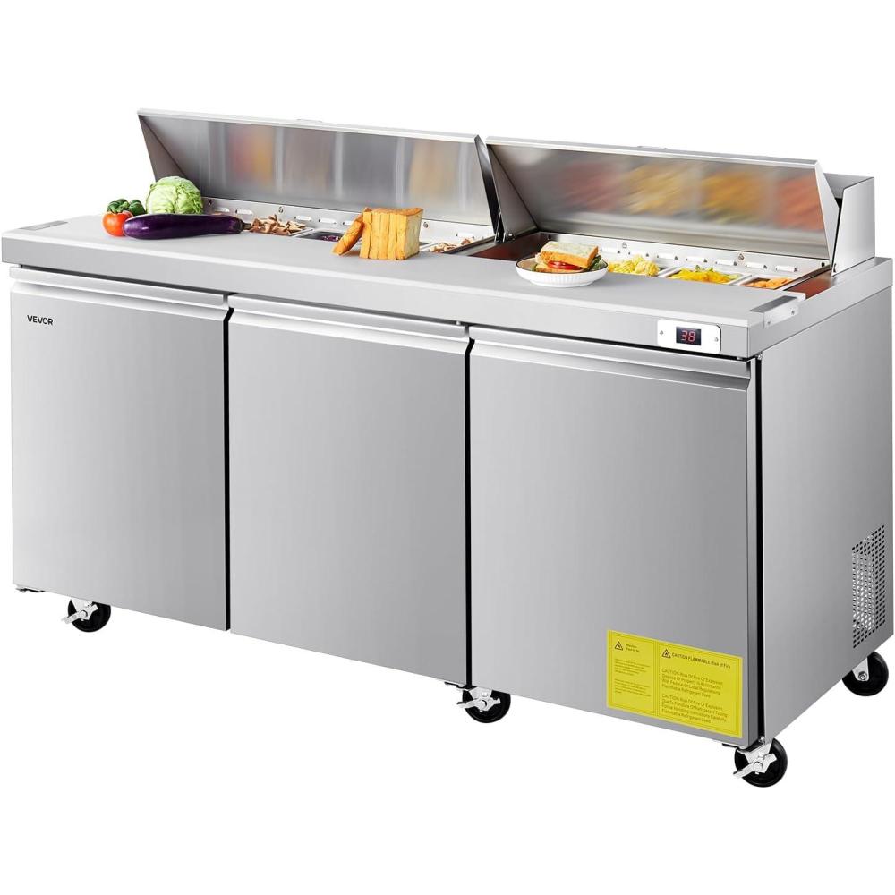 High-Quality Materials: VEVOR Salad prep table Built with stainless steel for long-lasting use and corrosion resistance. The evaporator features an electrophoretic coating and rust-preventive finish that help protect welds and maintain reliable refrigerant containment