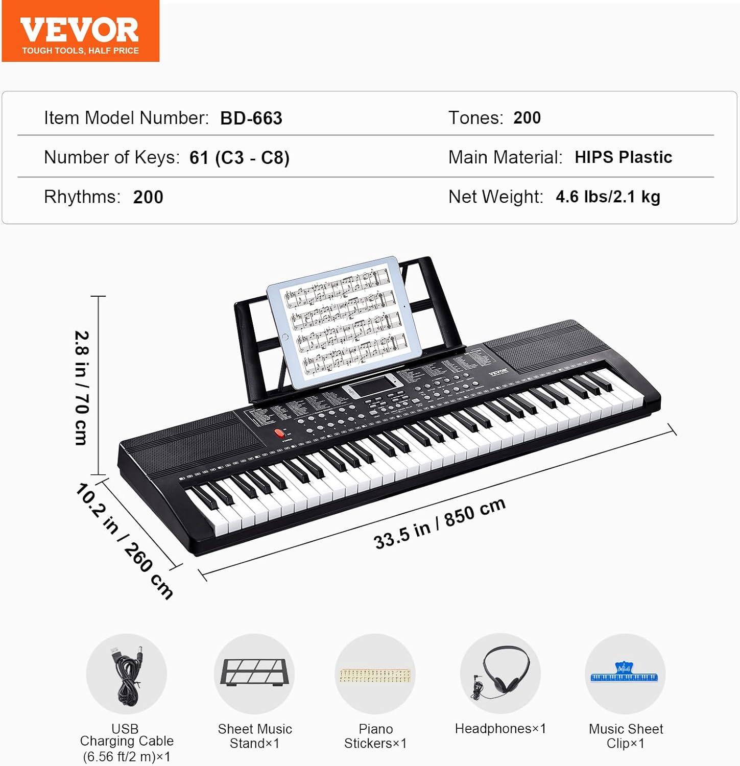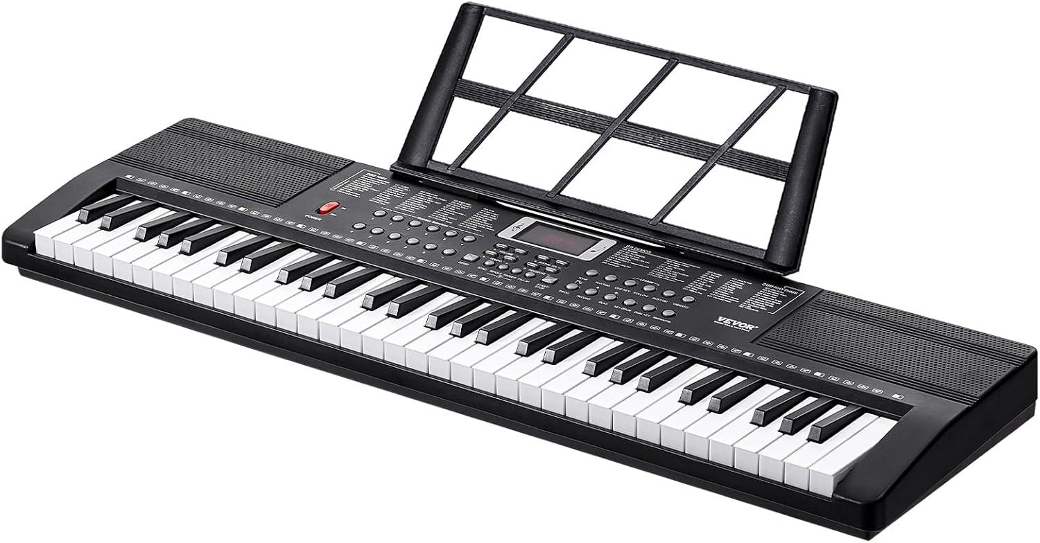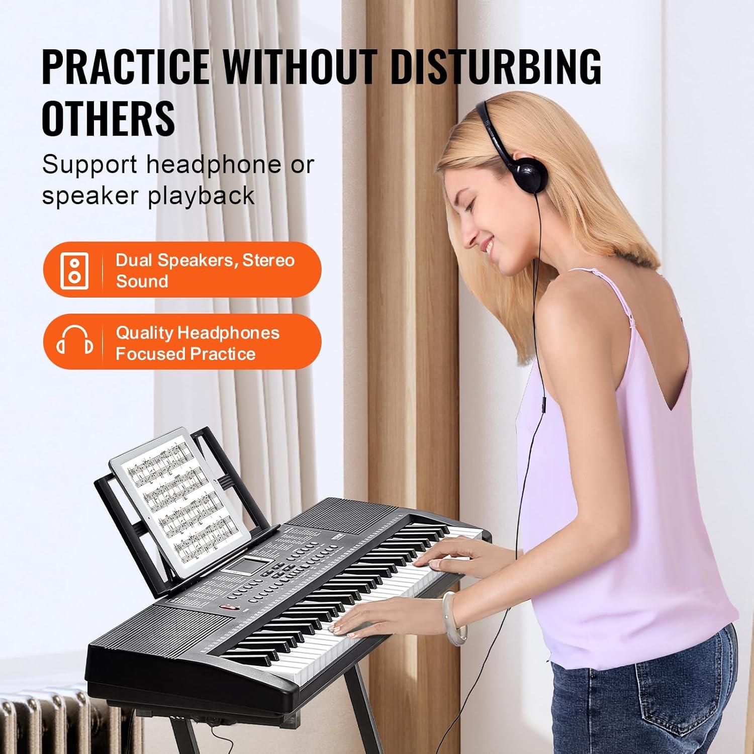 VEVOR 61 Key Digital Keyboard Piano, Lighted Keys, Electric Portable Piano with Adjustable Stand 600 Tones 500 Rhythms Built-In Speakers Sustain Pedal Headphones Microphone, USB MIDI for Beginners(Piano 61 Key)