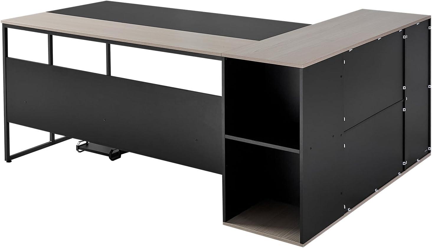 Ample Storage: This large L shaped desk comes with lockable drawers for organized office supplies, while open cabinets store larger items with ease. This versatile storage design makes it an ideal choice for home office settings