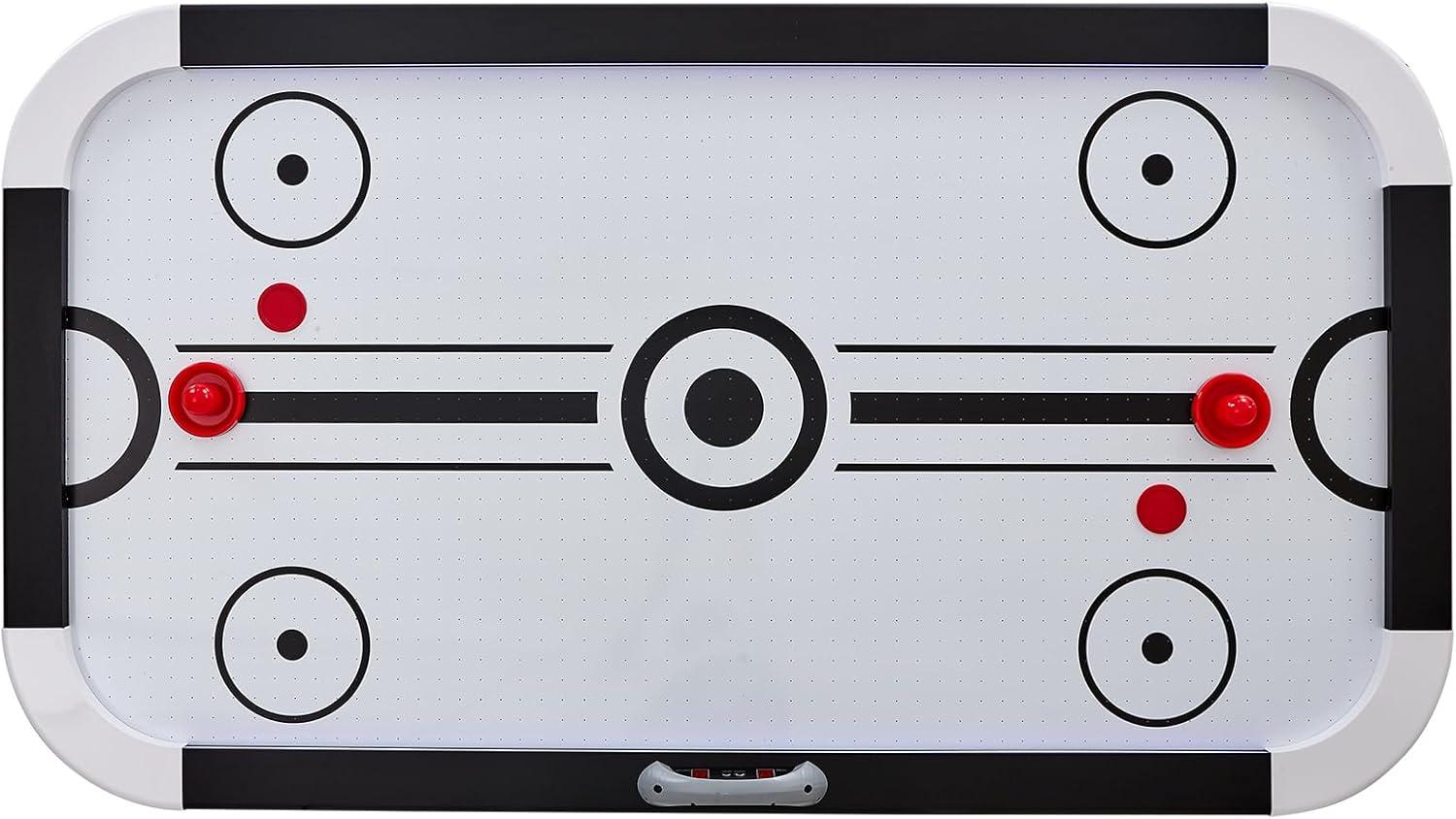 LED Lighting Feature: Experience a full-fledged gaming ambiance with the 72″ air-powered hockey table, equipped with dazzling LED light strips. Perfect for a group of 4, the table's radiant lights elevate the gameplay when room lights are turned off, making the game even more thrilling.
