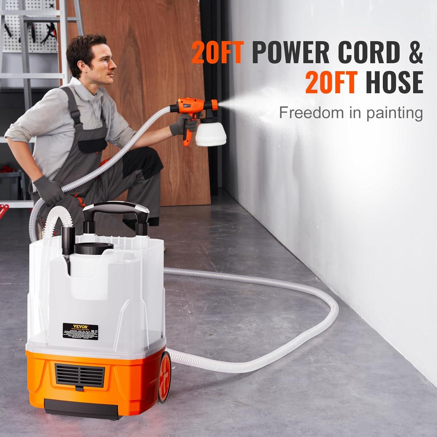 imageVEVOR 750W Stand Airless Paint Sprayer 3000PSI High Efficiency Electric Airless Sprayer with Cart Paint Sprayers for Home Interior and Exterior Furniture and Fences Fine and Even Painting Effect750W WheeledAirless Paint Sprayer