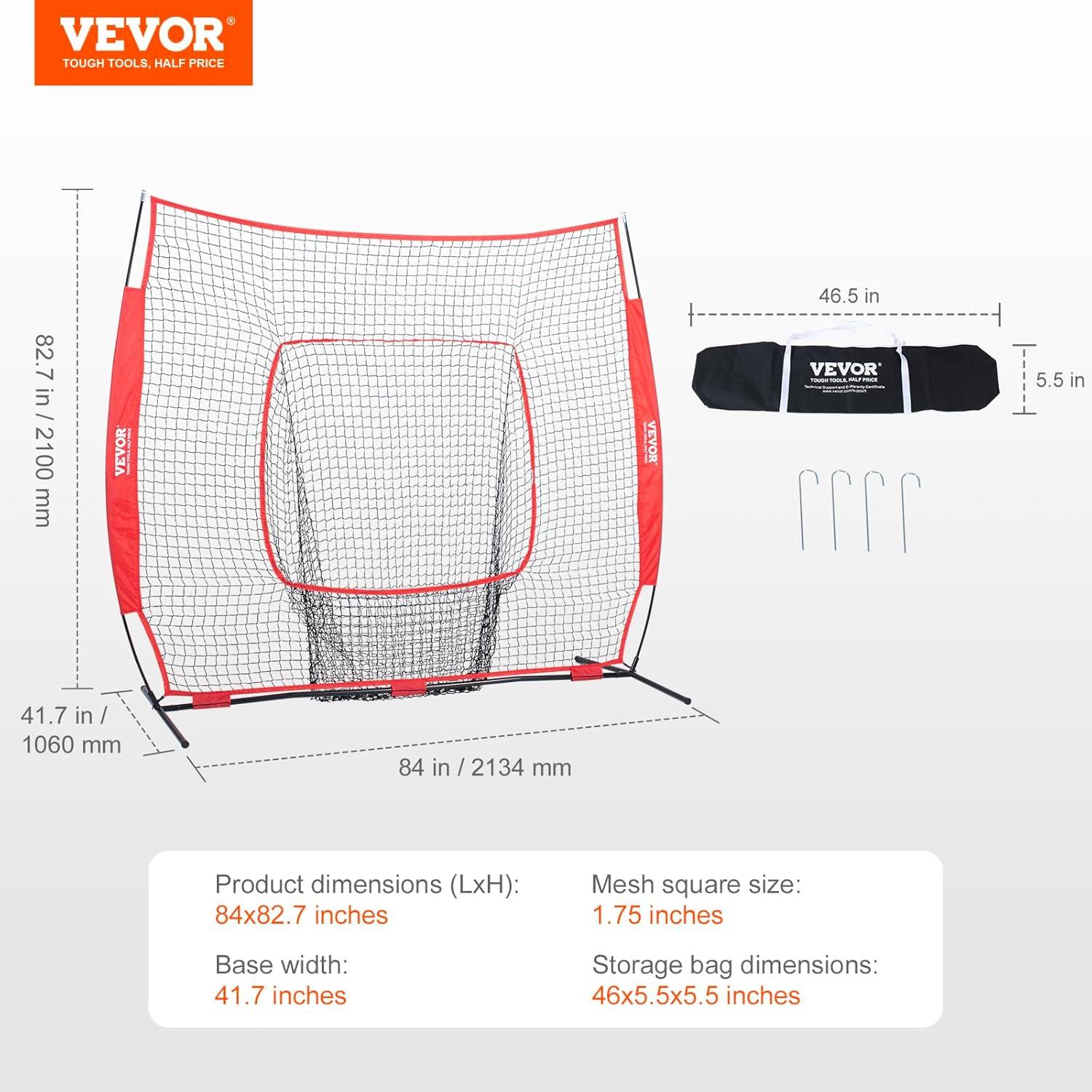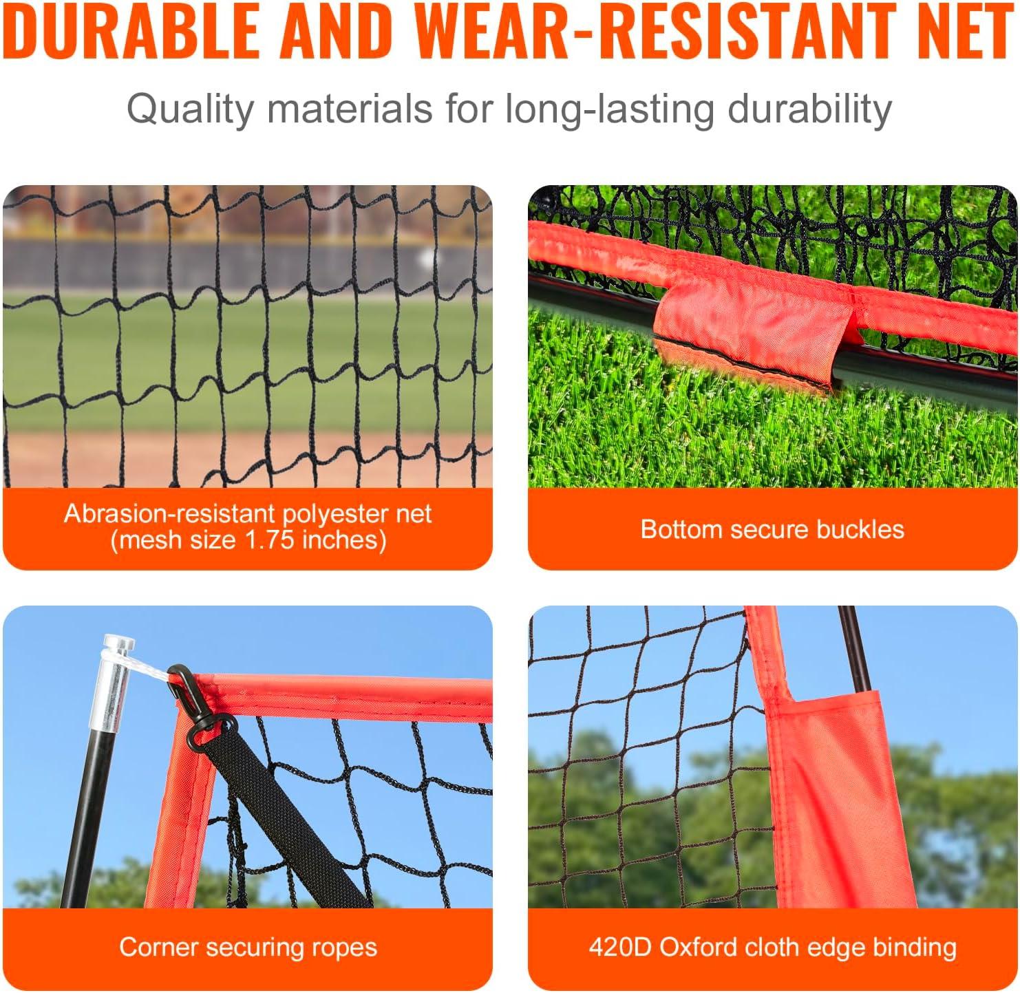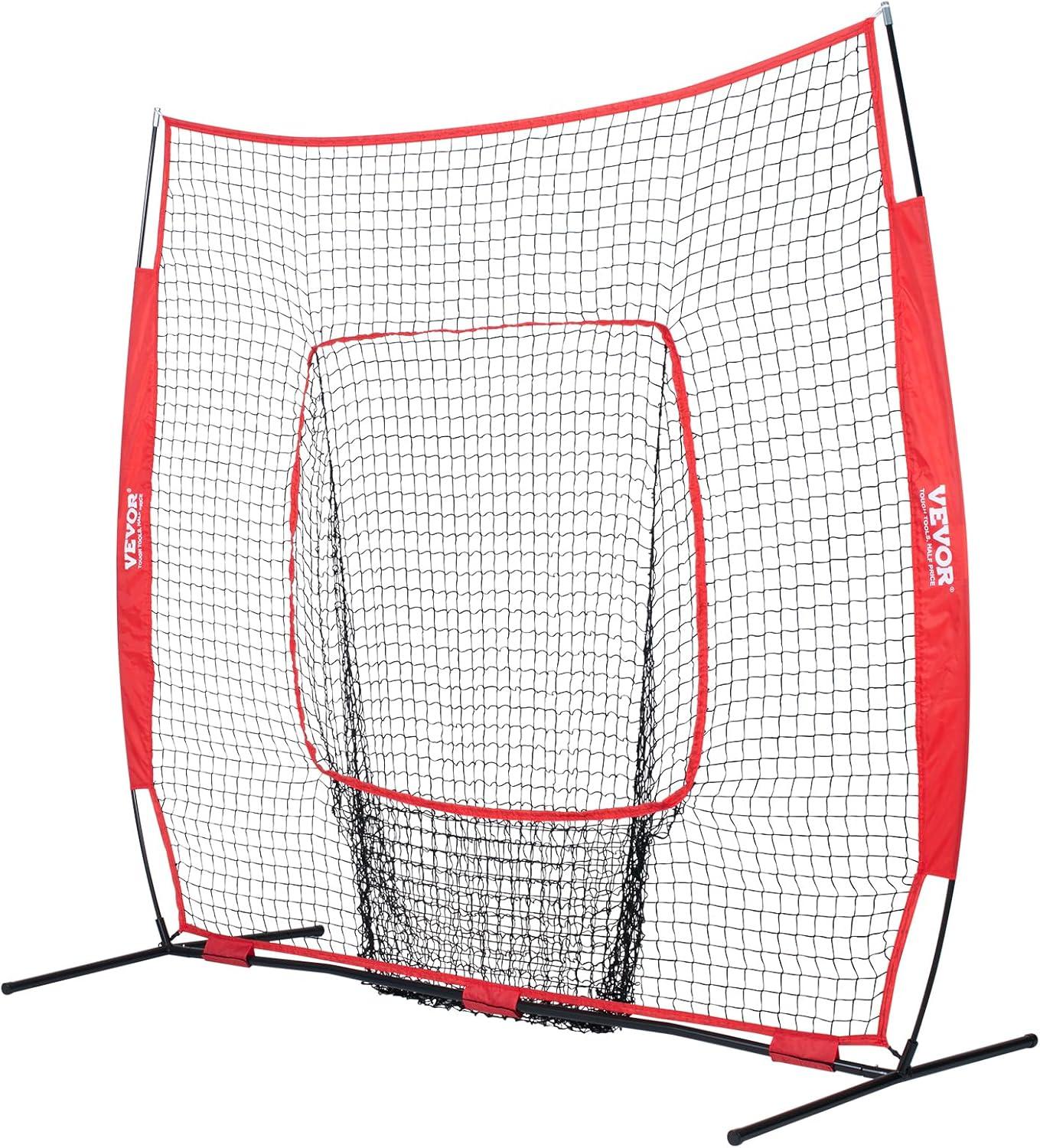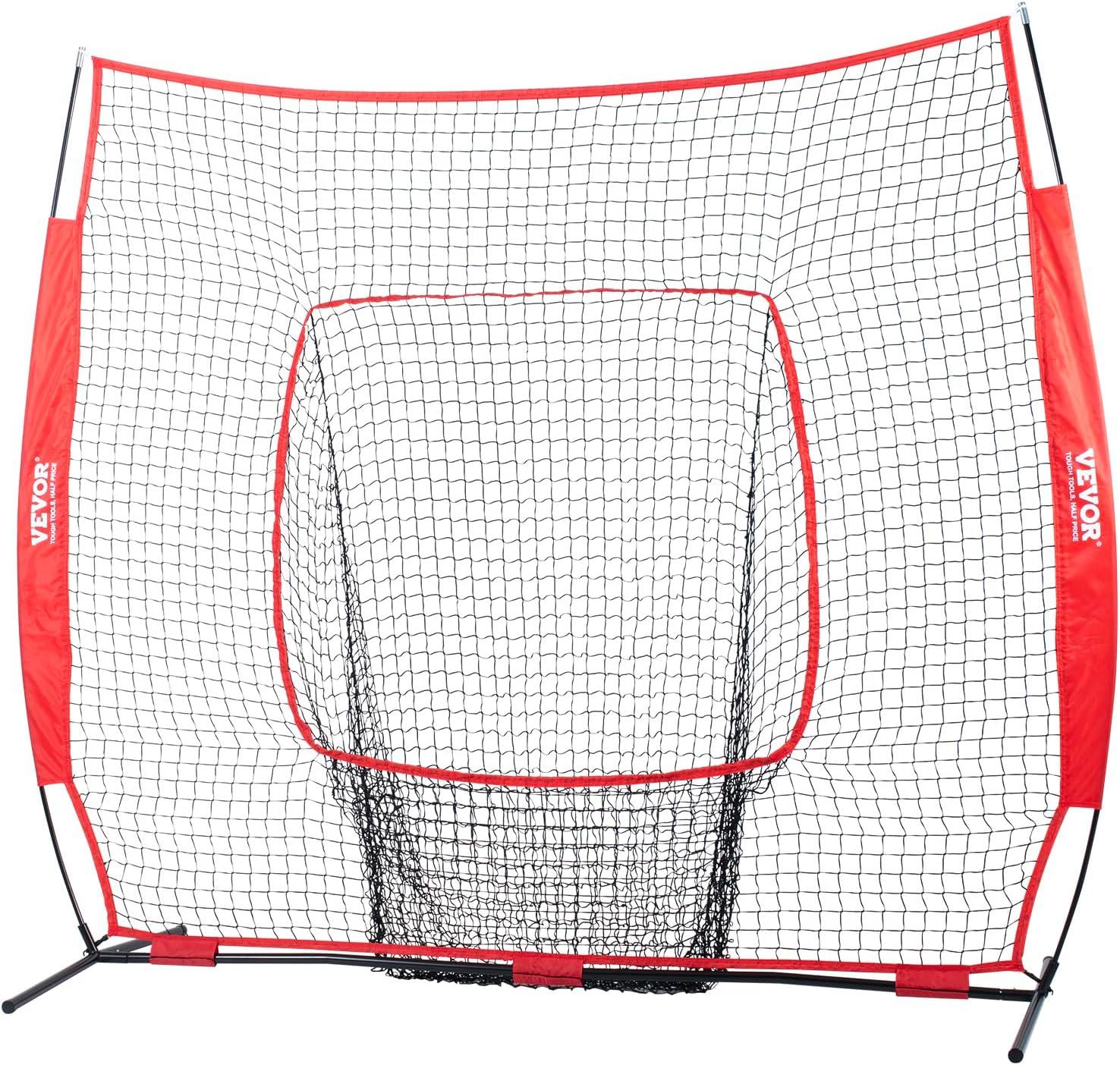 VEVOR 7x7ft Baseball Softball Practice Net, Portable Baseball Training Net for Hitting Batting Catching Pitching, Backstop Baseball Equipment Training Net(7x7FT(No Strike Zone))
