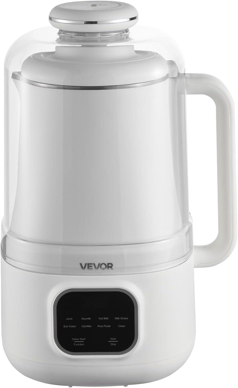 Easy Operation: This versatile nut milk maker integrates 8 functions—soy milk, nut milk, oat milk, fruit & veggie drinks, rice paste, smoothies, boiling water, and high-temp cleaning. One-touch start or switch, with a 12-hour preset for fresh morning drinks