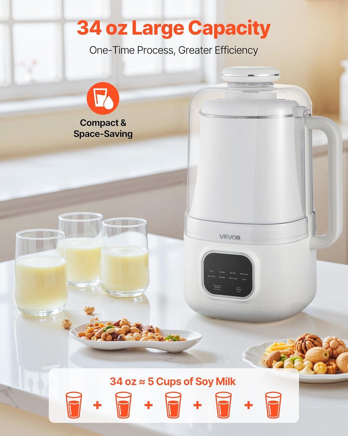 Large Capacity: The 41 oz nut milk maker machine design satisfies family servings in a single batch. Easily mix fruits, vegetables, and grains for unlimited beverage possibilities
