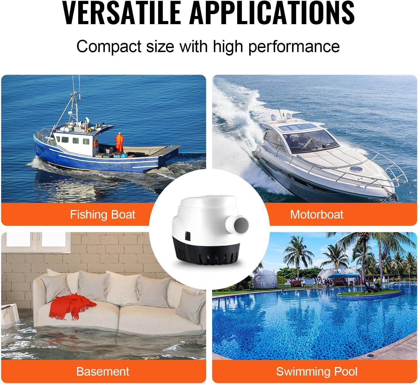 High Flow Pump: This livewell pump for boats drives water at a flow rate of up to 800 gallons per hour, maximizing oxygen supply to the fish in the bilge and ensuring the long-term survival of both fish and bait.