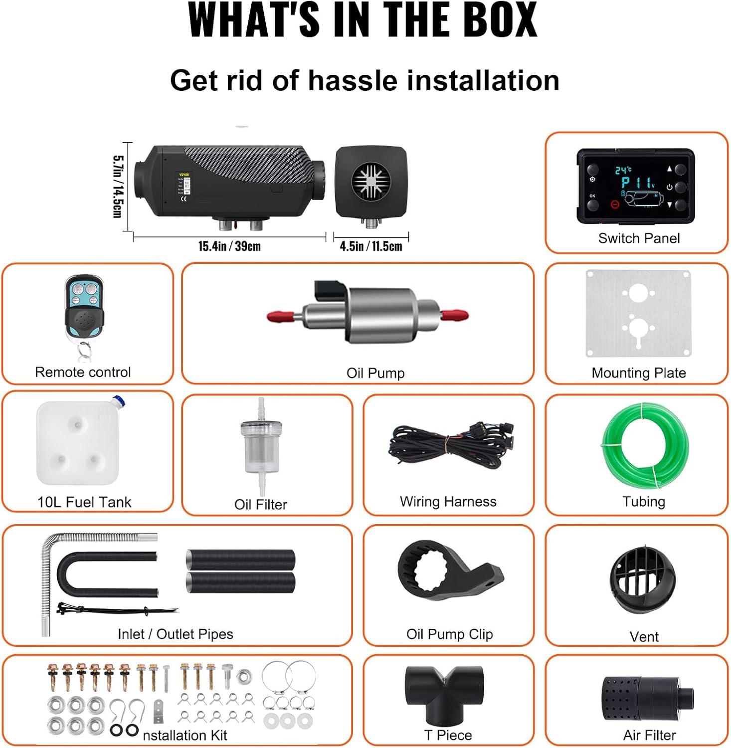VEVOR 8KW Diesel Heater, DC12-24V, Fast Heating Diesel Air Heater, with Remote Control and Color Digital Display, 10L Fuel Tank, Low Noise, Voice Announcement, for RV, Truck, Boat and Trailer(Black)