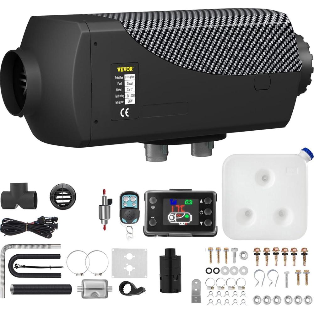 VEVOR 8KW Diesel Heater, DC12-24V, Fast Heating Diesel Air Heater, with Remote Control and Color Digital Display, 10L Fuel Tank, Low Noise, Voice Announcement, for RV, Truck, Boat and Trailer(Black+white)