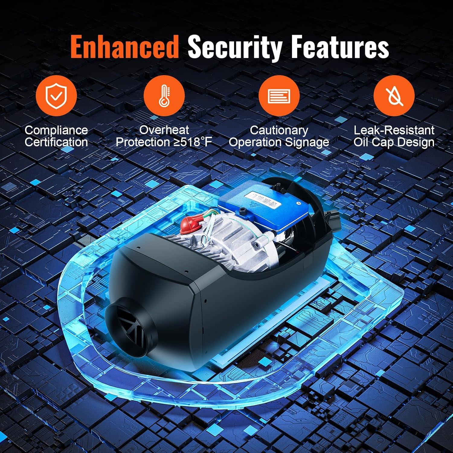 Low Fuel Consumption: With a precision low-noise fuel pump, the diesel air heater only consumes 1 gallon per night (0.18-0.37L/h). The 10L (2.6gal) large-capacity tank and ≥90% combustion efficiency maximize fuel use, reducing waste