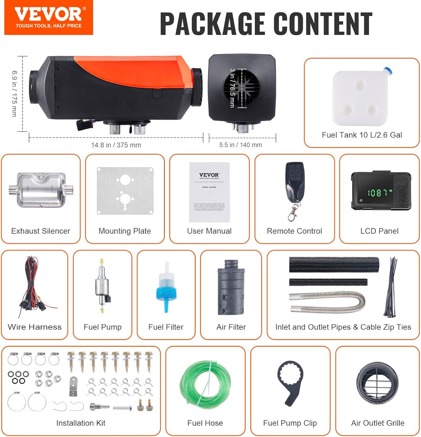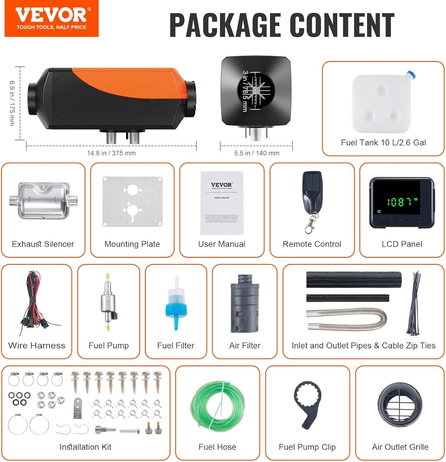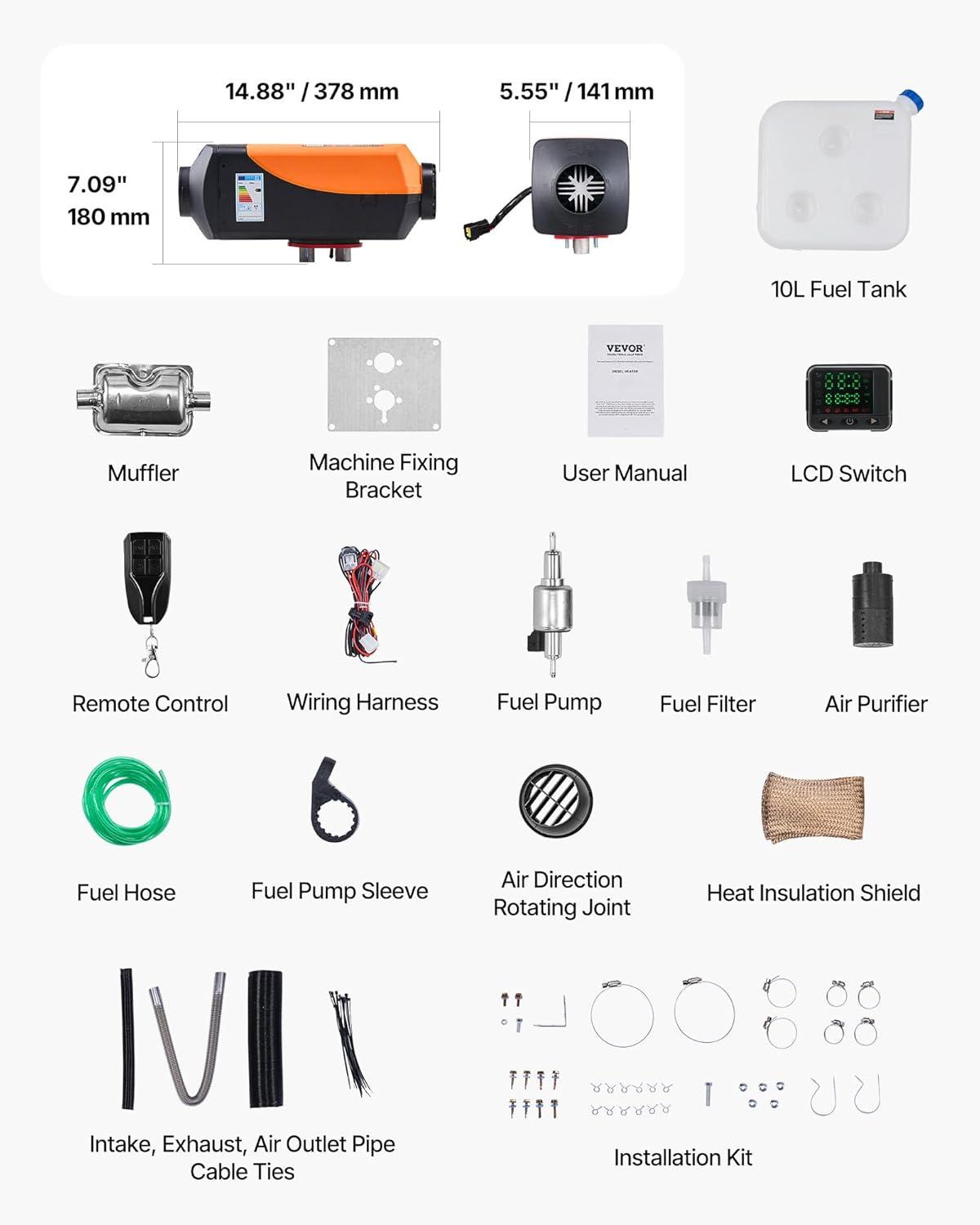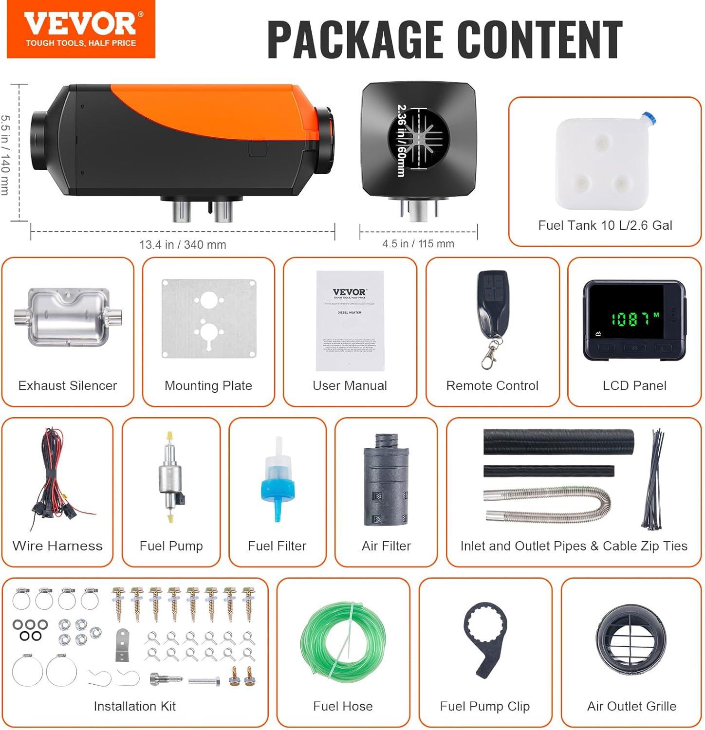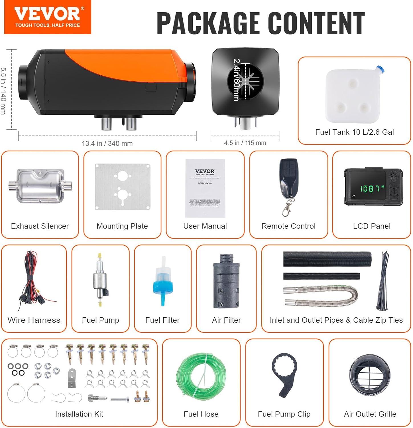 Be the first to review “VEVOR 8KW Diesel Heater, DC12-24V, Fast Heating Diesel Air Heater, with Remote Control and Color Digital Display, 10L Fuel Tank, Low Noise, Voice Announcement, for RV, Truck, Boat and Trailer(Orange)”
