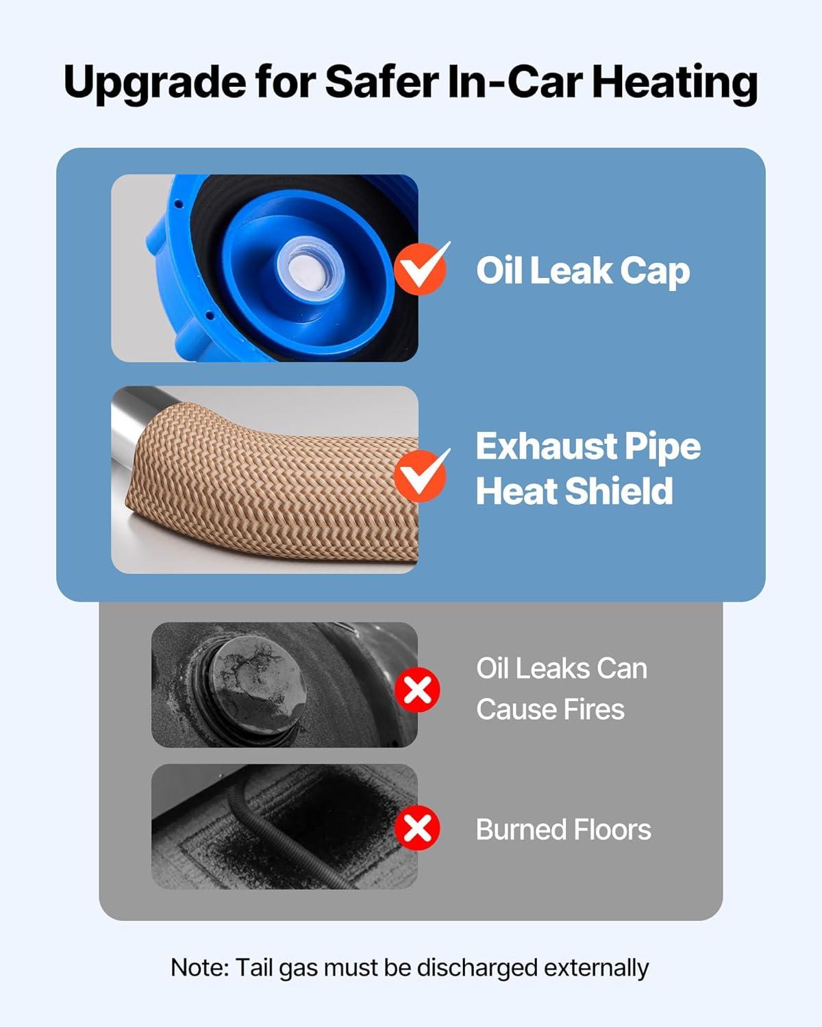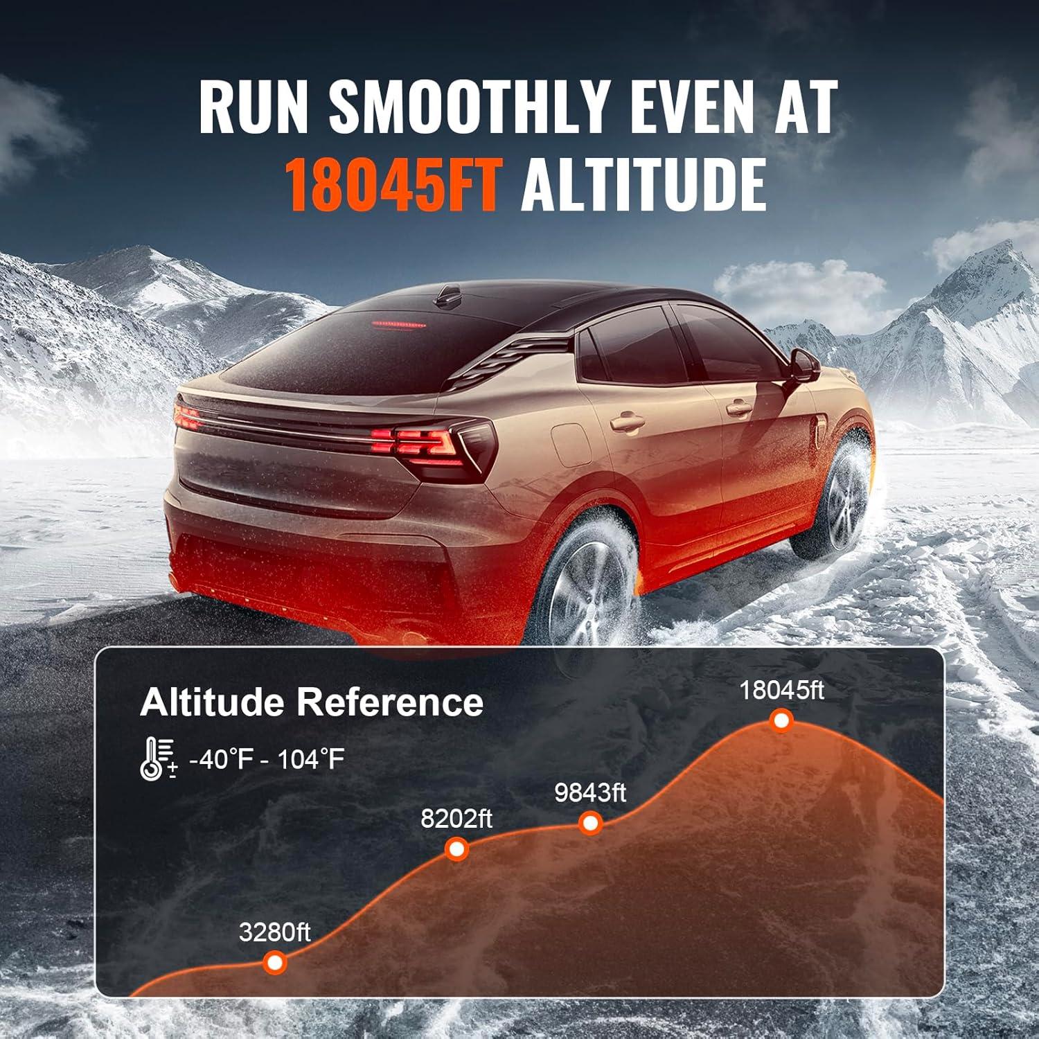Wide Applicability: The diesel parking heater works effectively at altitudes under 9843ft. Compact and easy to install, it provides continuous warmth in high-altitude or cold environments, ensuring comfort no matter where you are