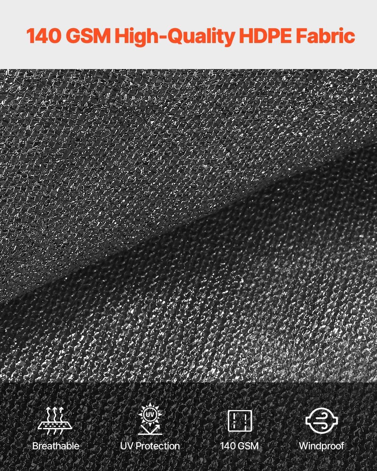 Premium Fabric: Made from 140 GSM high-density HDPE, this 90% shade cloth is tear-resistant, abrasion-resistant, waterproof, and breathable. It withstands daily wear while ensuring air circulation for long-term stability in all weather conditions