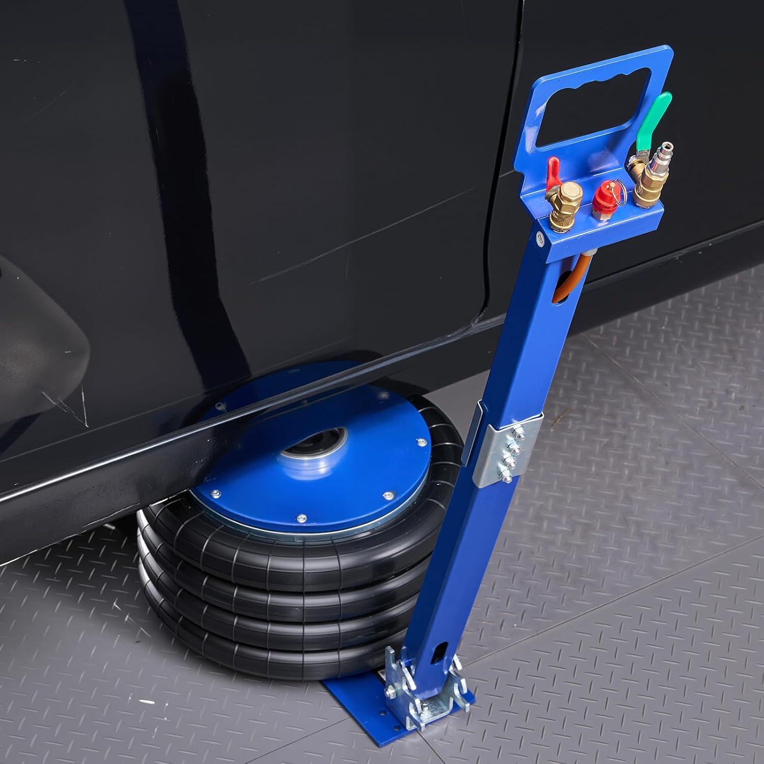 Controlled & Safe Descent: The air bag jack features six heavy-duty steel pipes inside, each with a shorter stroke for smooth, steady lowering and precise height control. It stops sudden drops, distributes weight evenly, and avoids deformation or tilting