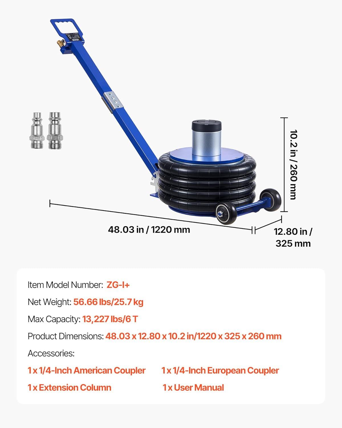 Fast Air Lift in Seconds: The air jack lifts 5.5-18.3 in/140-464 mm under no load. It raises your car in 4-10 seconds when connected to an air compressor, great for tire changes, undercarriage repairs & oil swaps. Use with a jack stand for long support