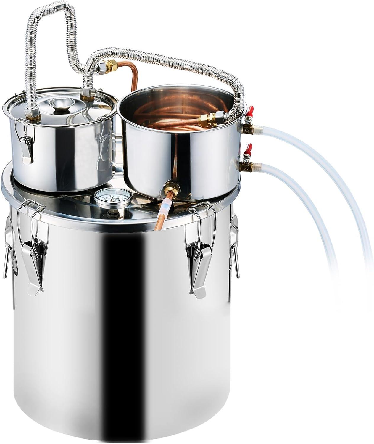 VEVOR Alcohol Still, 5Gal / 19L Alcohol Distiller with Thumper Keg, Distillery Kit for Alcohol with Copper Tube, Build-in Thermometer & Water Pump for Wine Whisky Brandy(5 Gal)